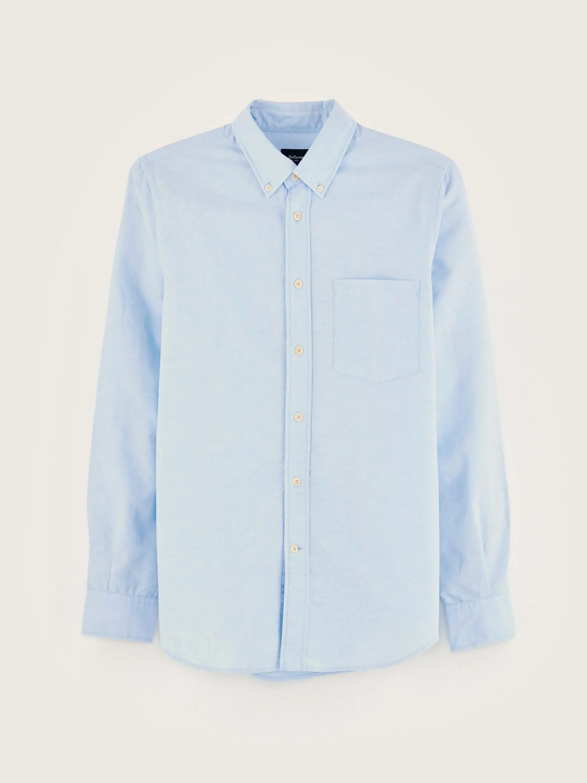 Aansluitend button-down overhemd van blauw popeline katoen.