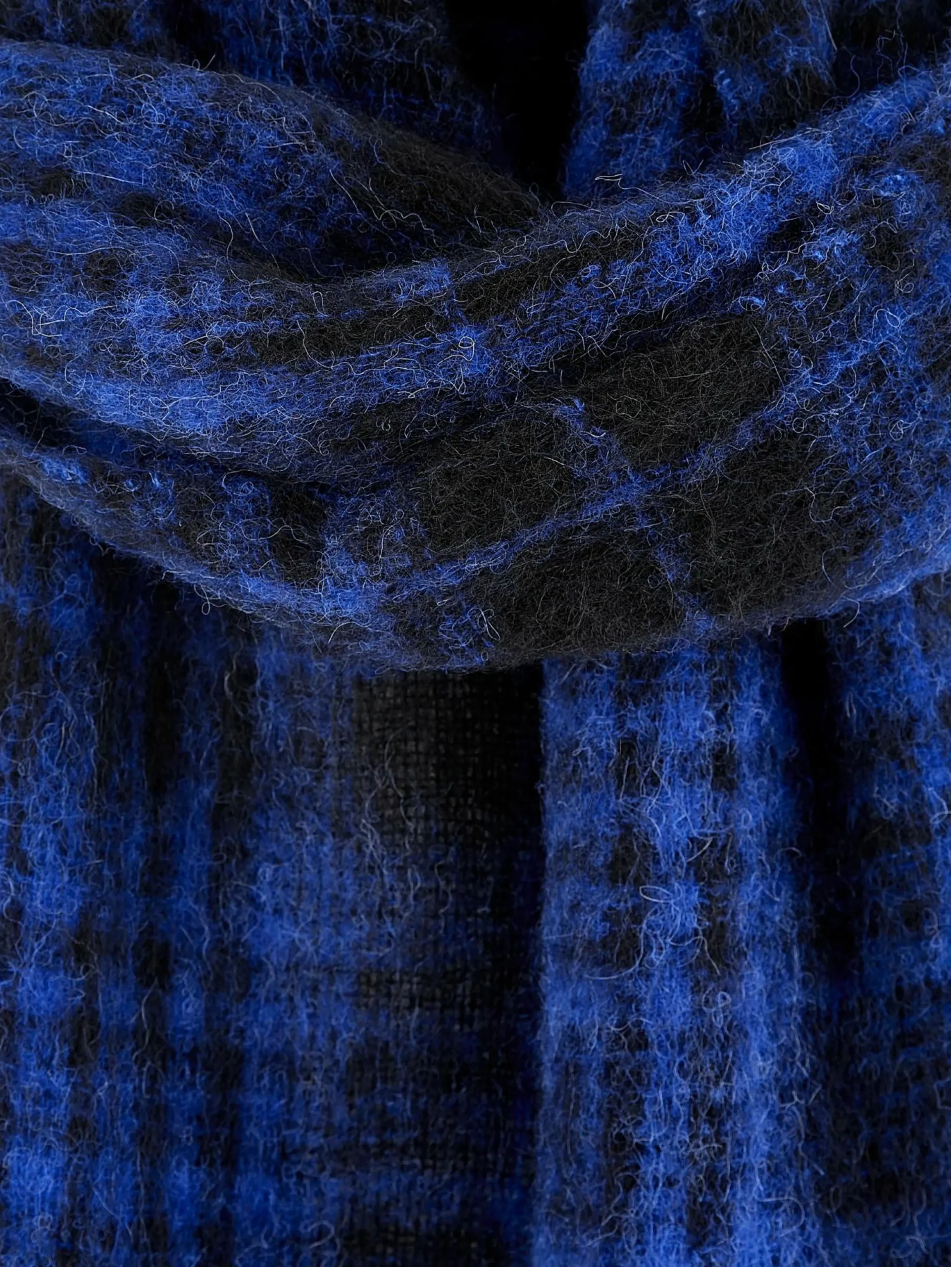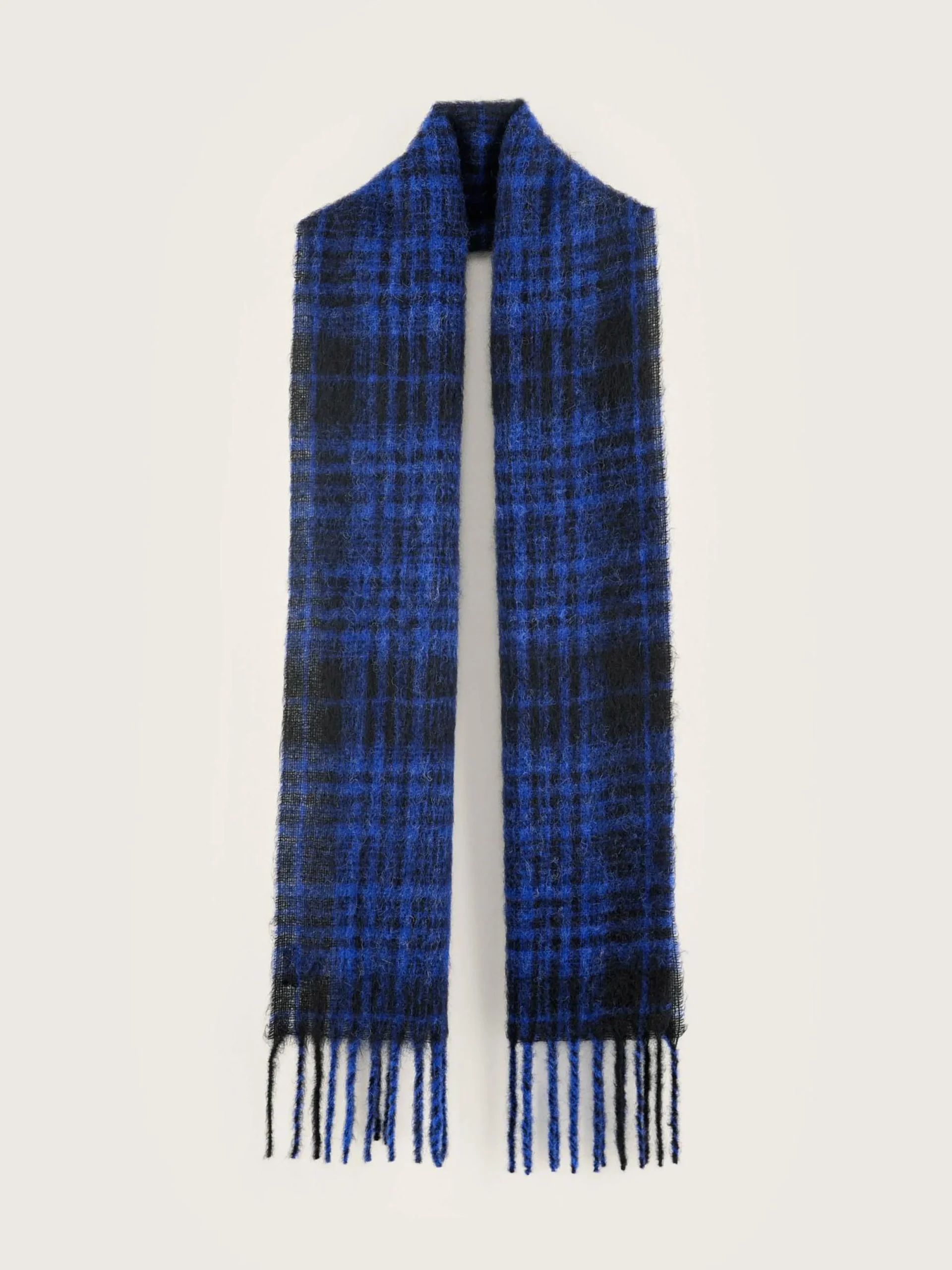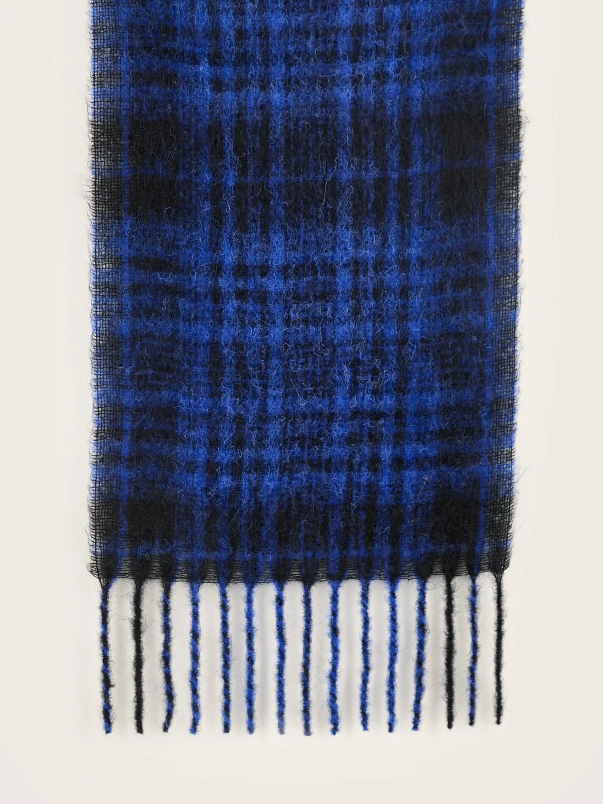 Geweven sjaal met een ruitjespatroon van blauw en zwart