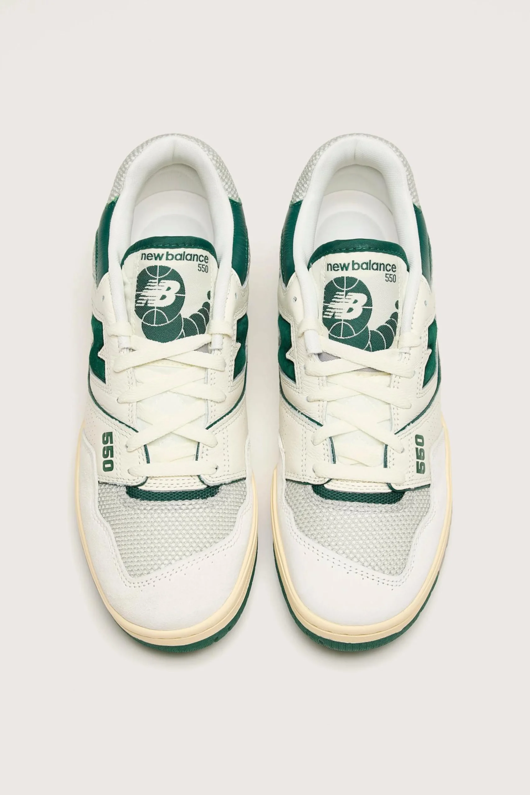 The New Balance 550 low-top everyday sneakers feature a dependable leather, synthetic, and mesh upper design.