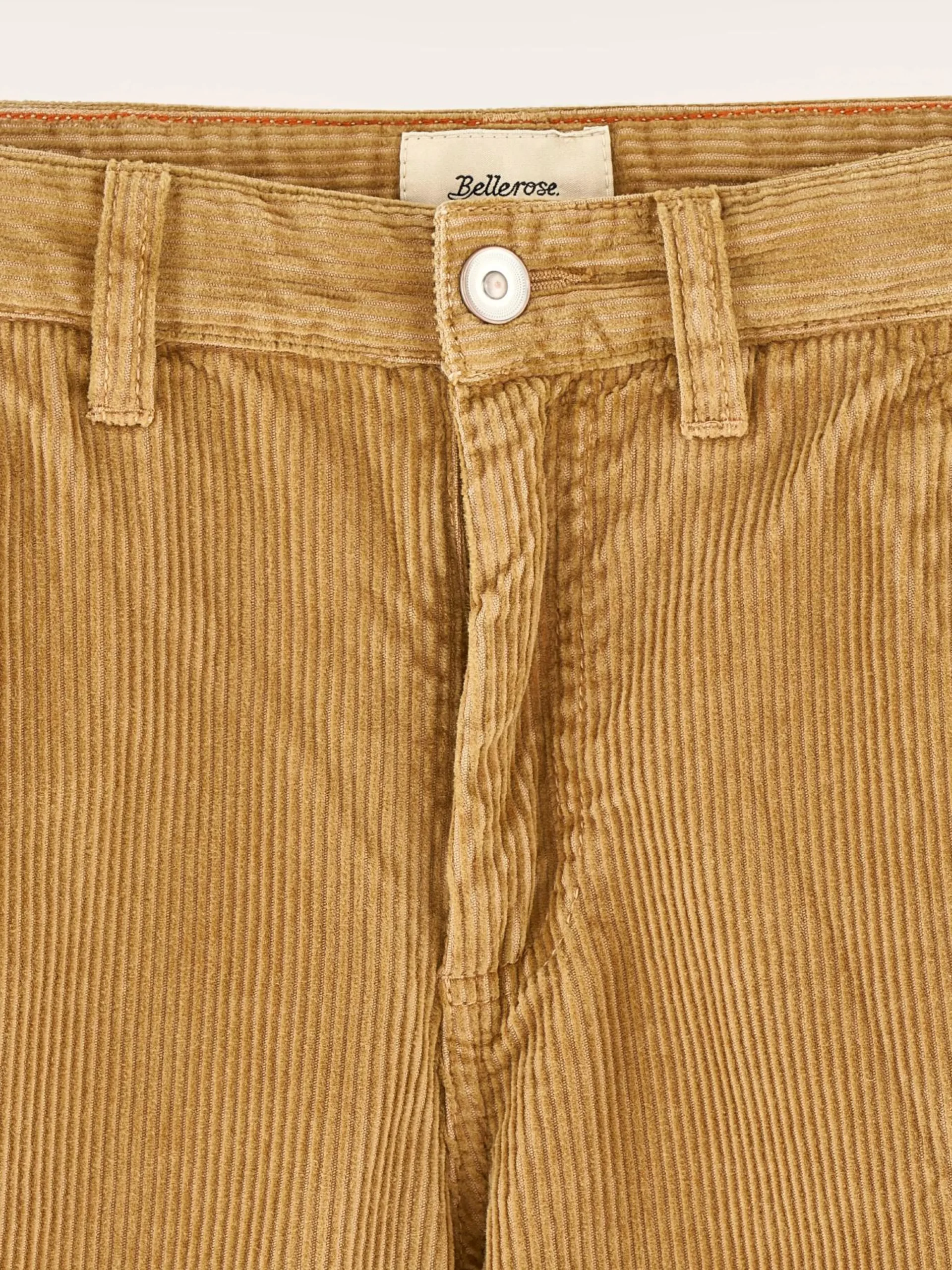 Klassieke, lichtbruine broek met normale taille en rechte pijpen, van corduroy met medium rib.