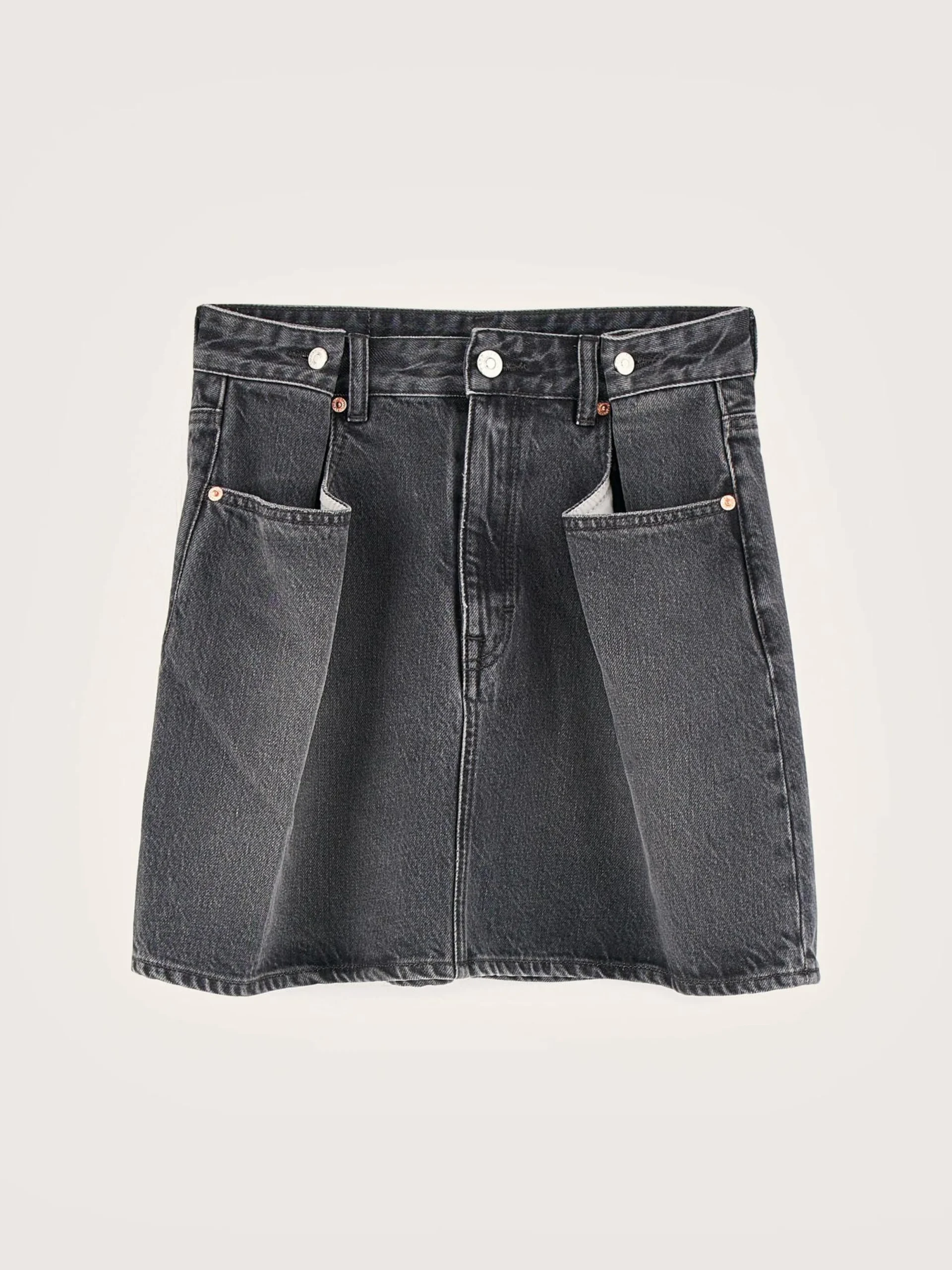 Zwarte stone washed minirok van katoendenim met westernlook.