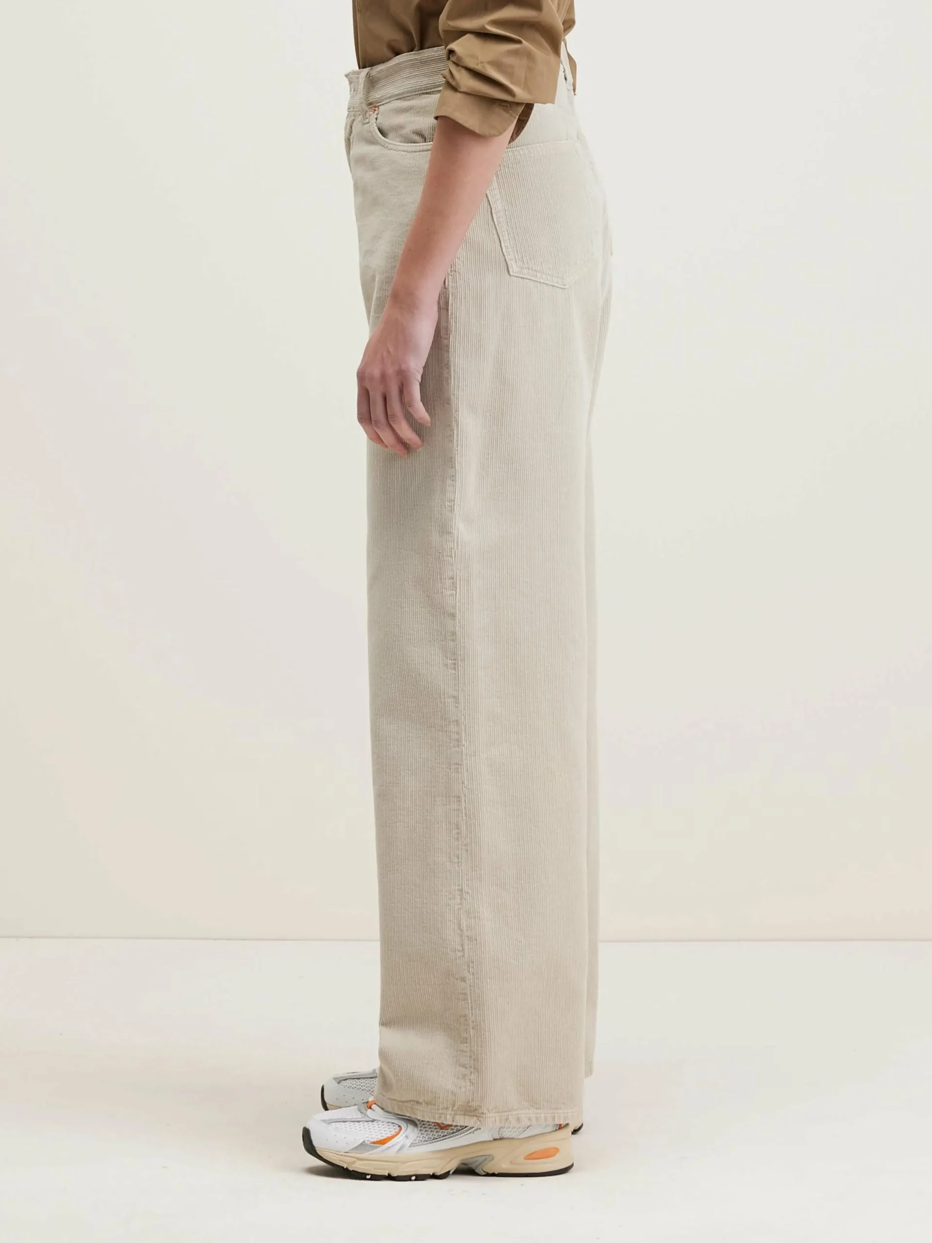 High-waist boyfriend jeans met wijde pijpen, van crèmekleurig corduroy katoen.
