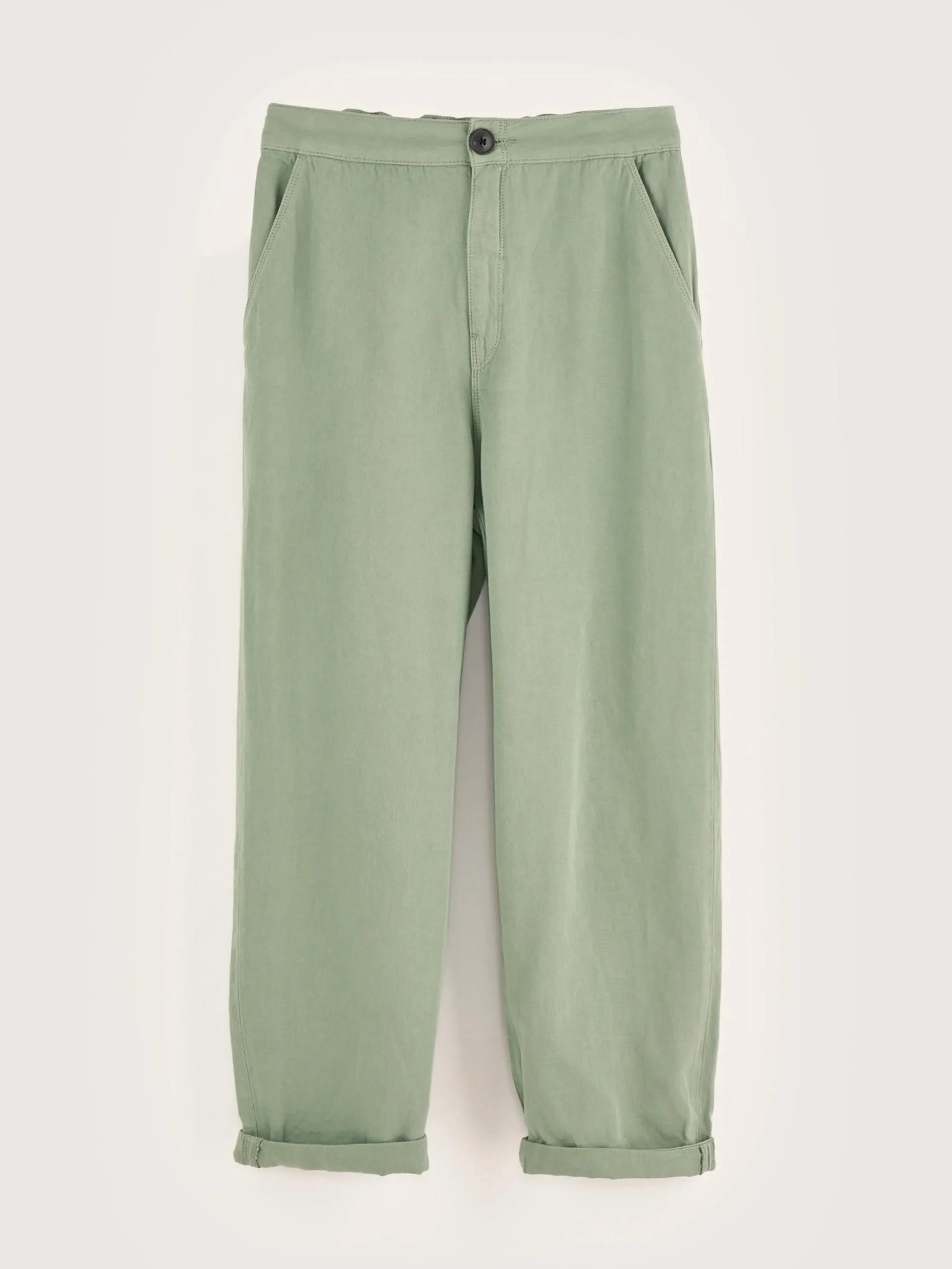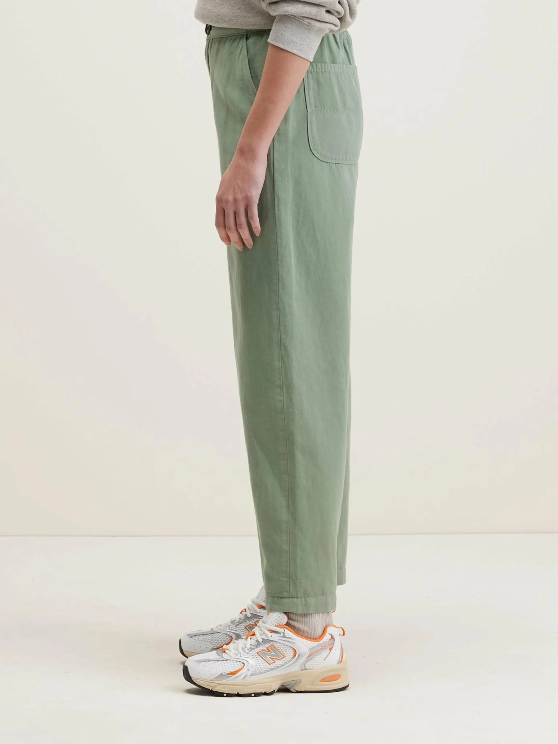 Relaxed broek van eucalyptusgroene canvas (van katoen en linnen).