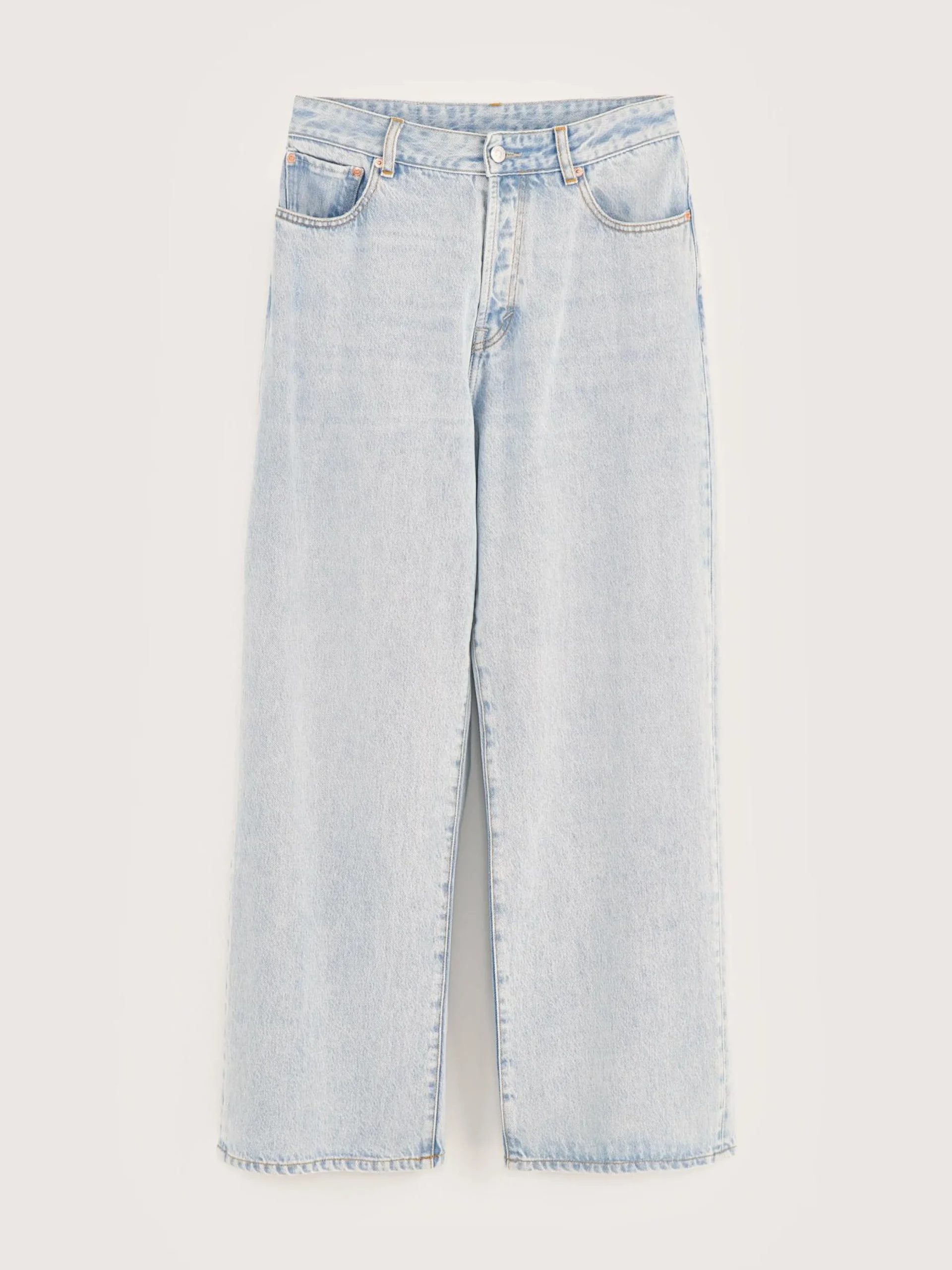 Mid-waist jeans met wijde pijpen in versleten lichtblauw denim.