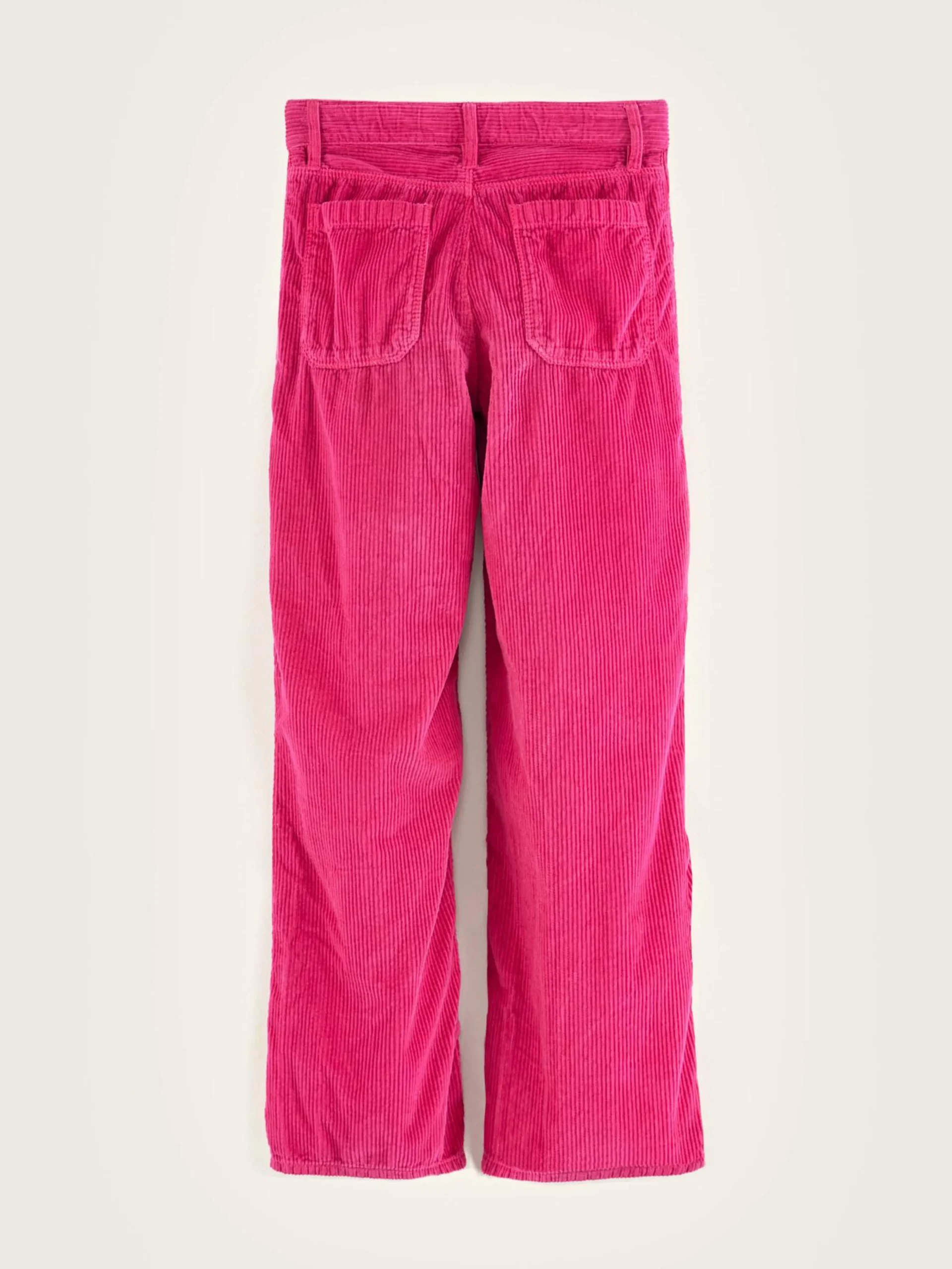 Fuchsia roze broek met hoge taille en wijde pijpen, van corduroy katoen.
