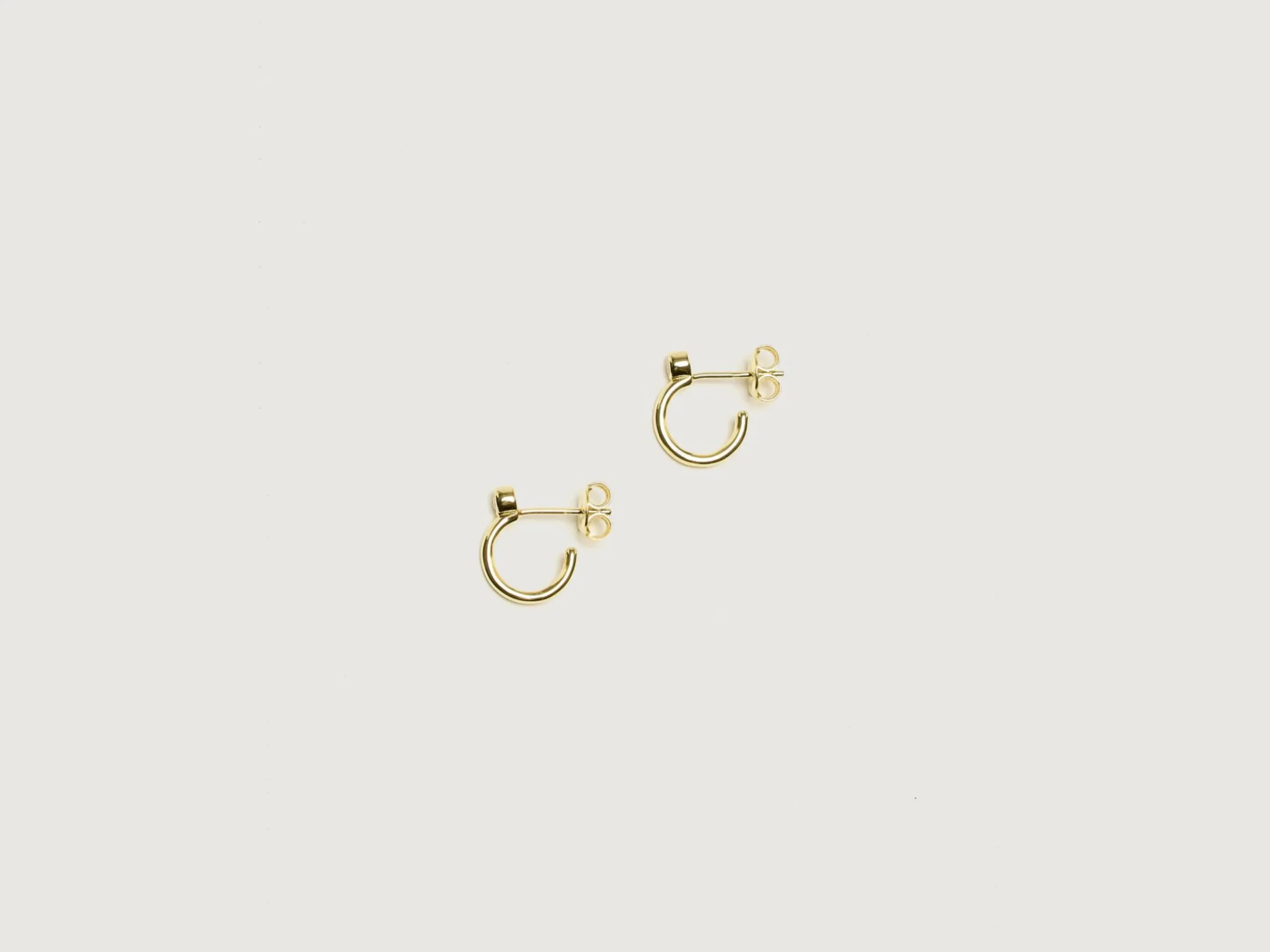 De RAGBAG Odette Mini Oorringen zijn vervaardigd uit 18k goudgeplateerd sterling zilver met witte zirconia stenen.