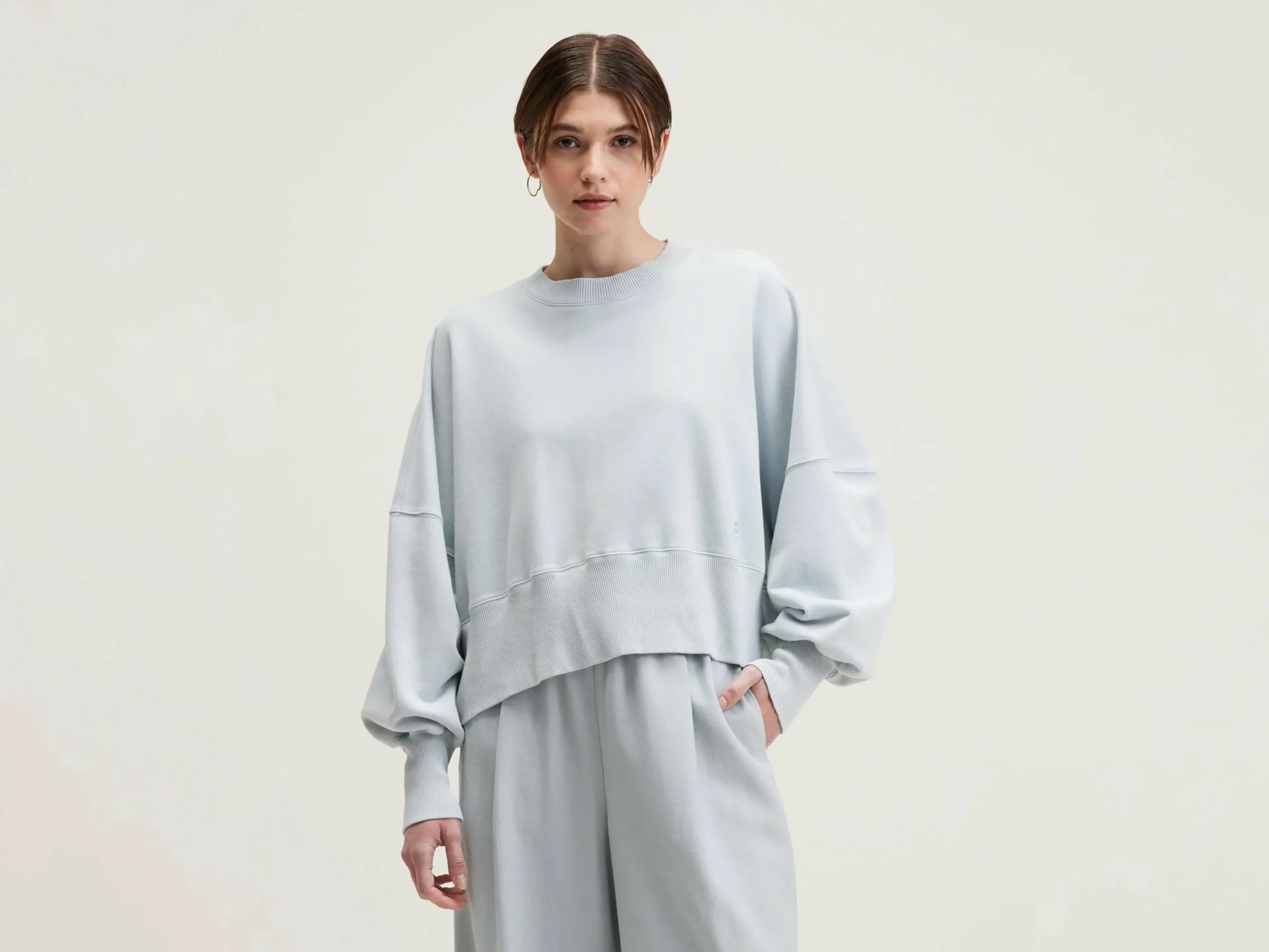 Oversized, cropped lichtblauw sweatshirt van biologische katoenfleece.