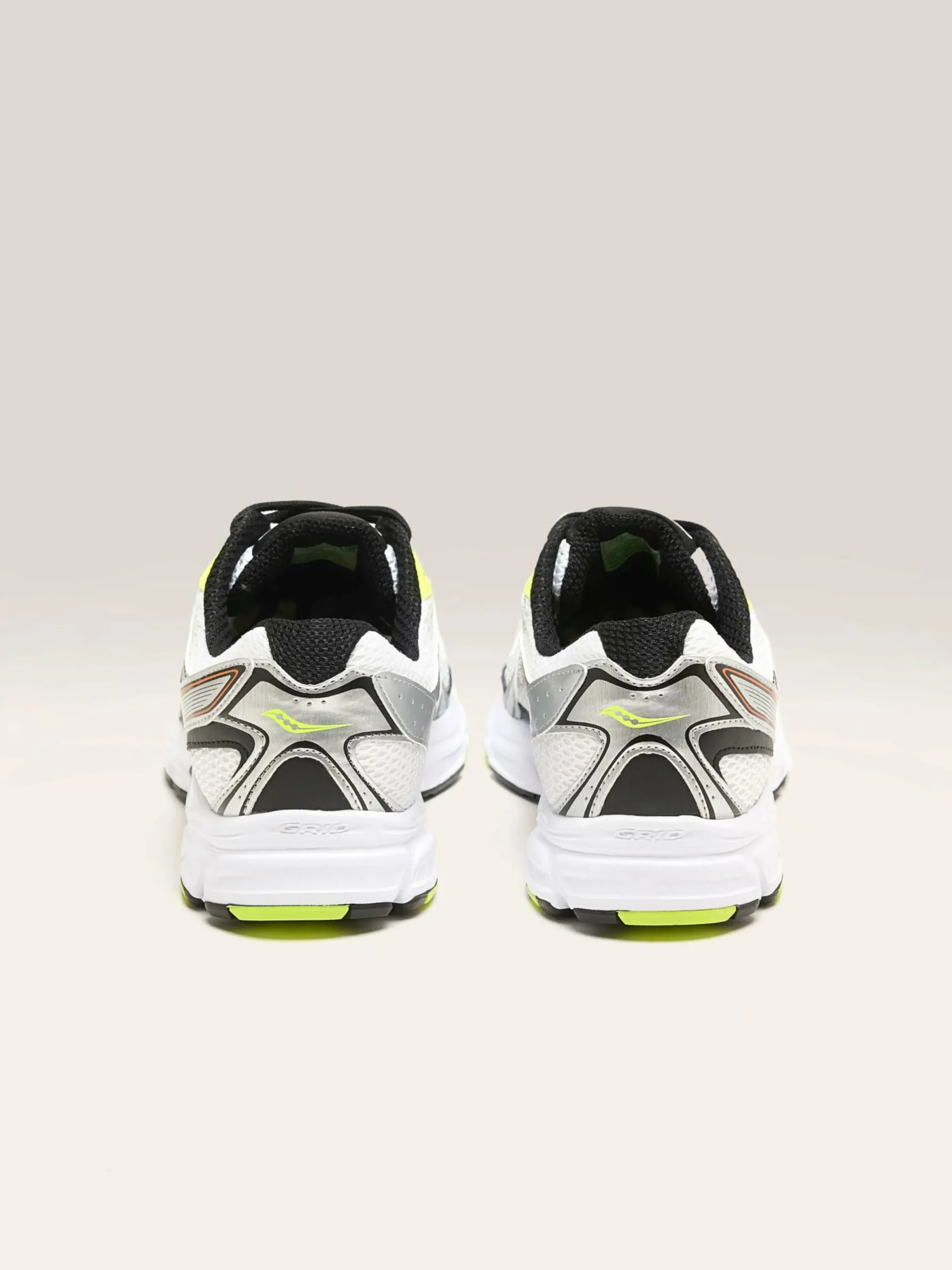 The Saucony Grid Ride Millennium everyday sneaker features grid cushioning, mesh, and metallic details.