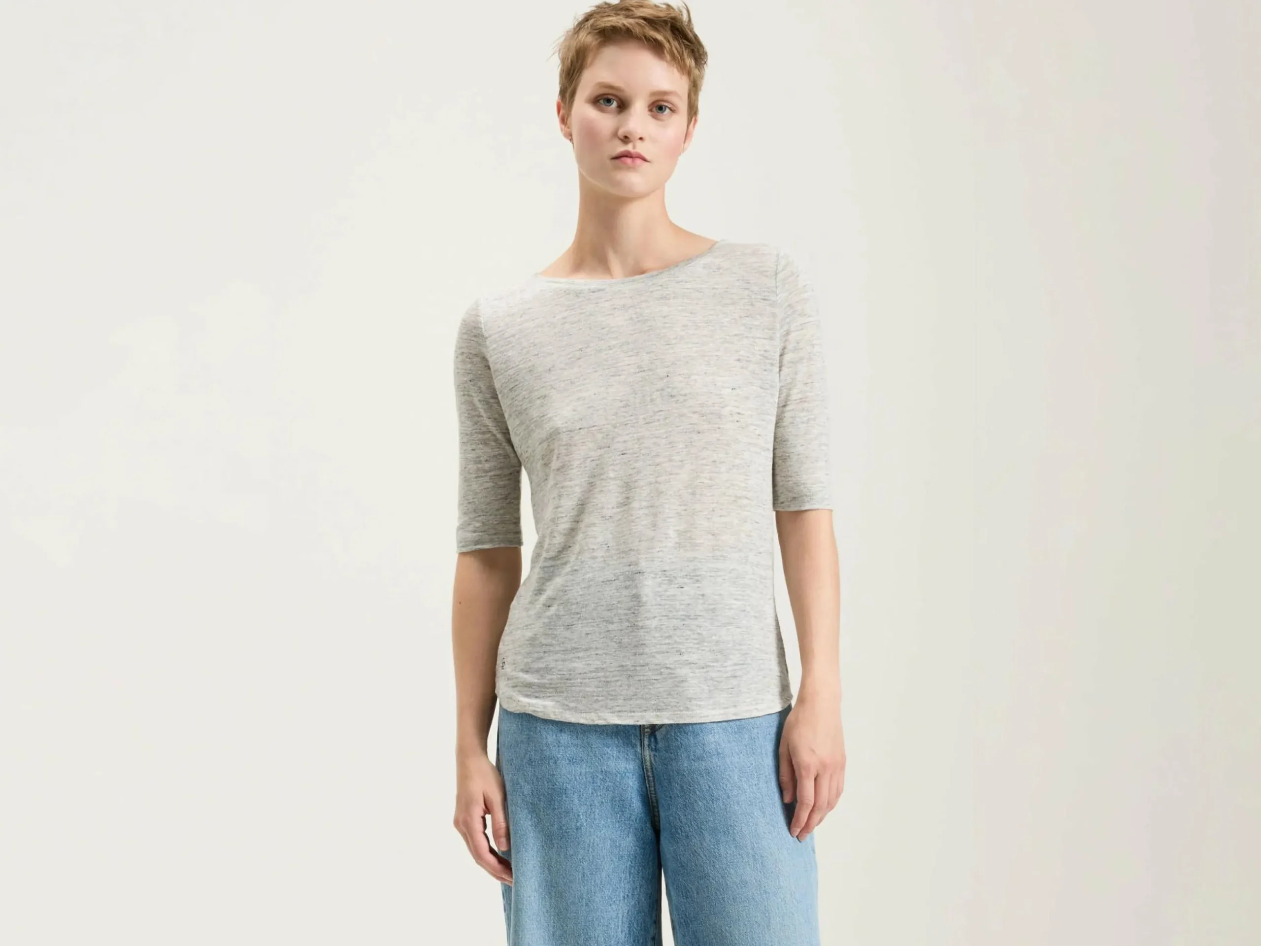 Slim fit t-shirt met ronde hals en korte mouwen in heidegrijze katoenjersey.