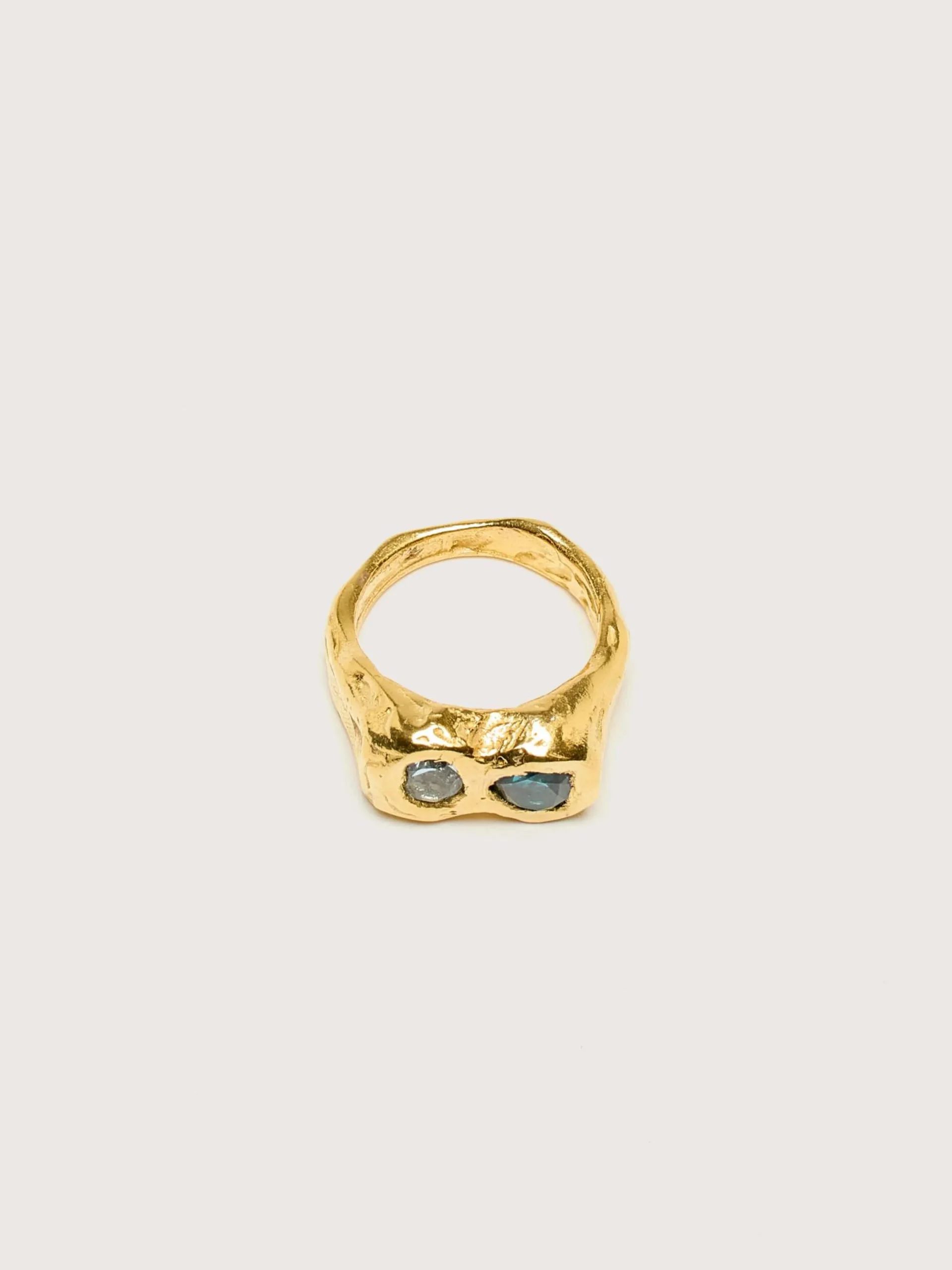 De Simuero Buzo Gold ring heeft een gedurfd ontwerp handgemaakt in 18k verguld 925 zilver met topaas stenen.
