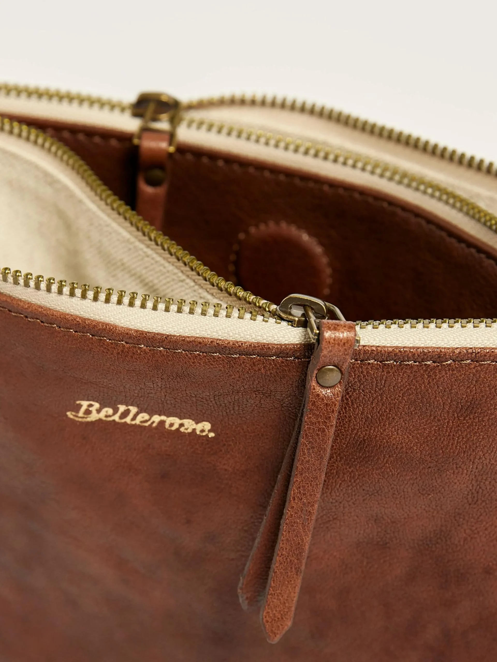 Minimalistische tas met twee vakken, van bruin, gewassen leer.