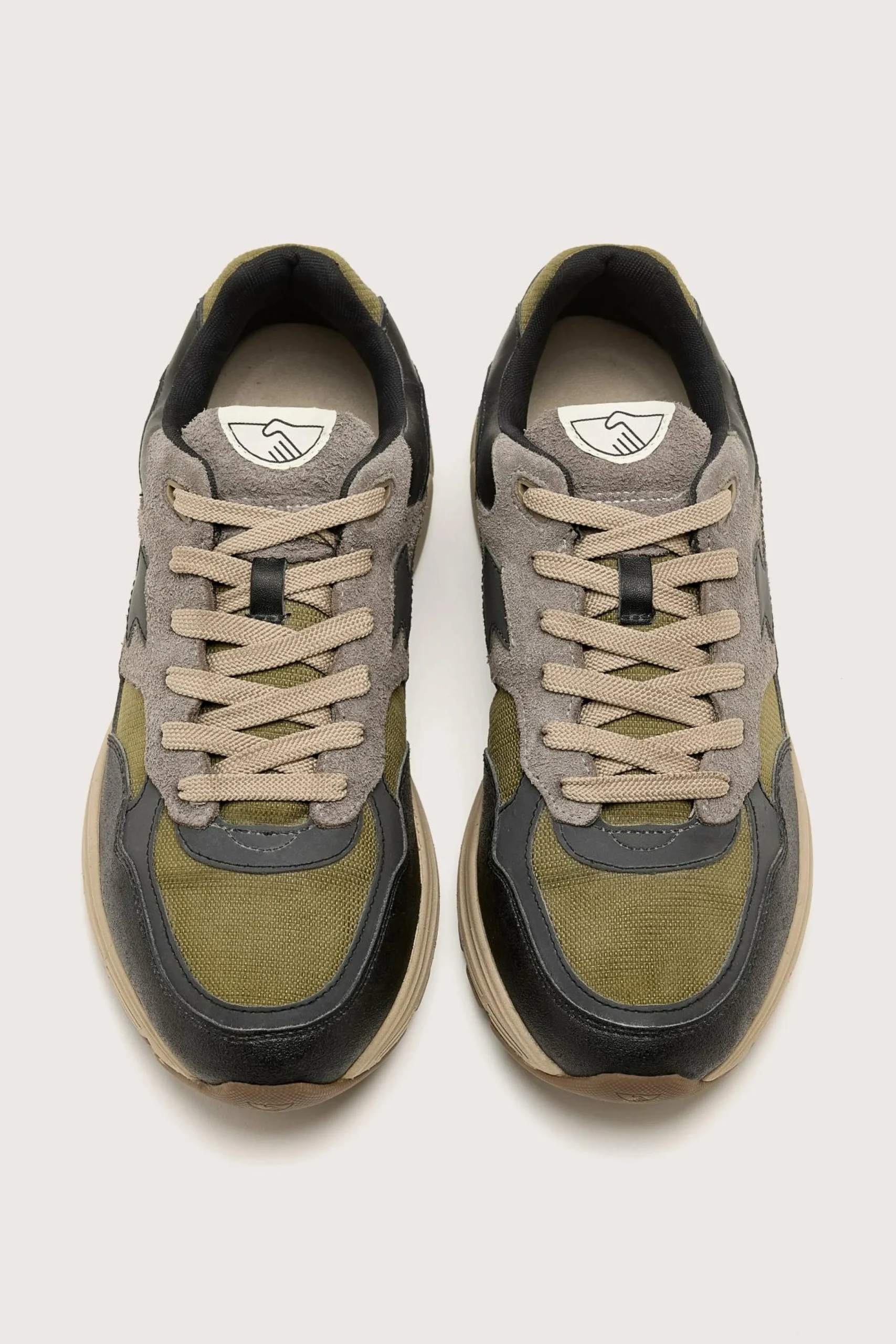 The Stepney Workers Club Amiel S-Strick Geo-Merged water-proof sneaker features a lightweight running silhouette.