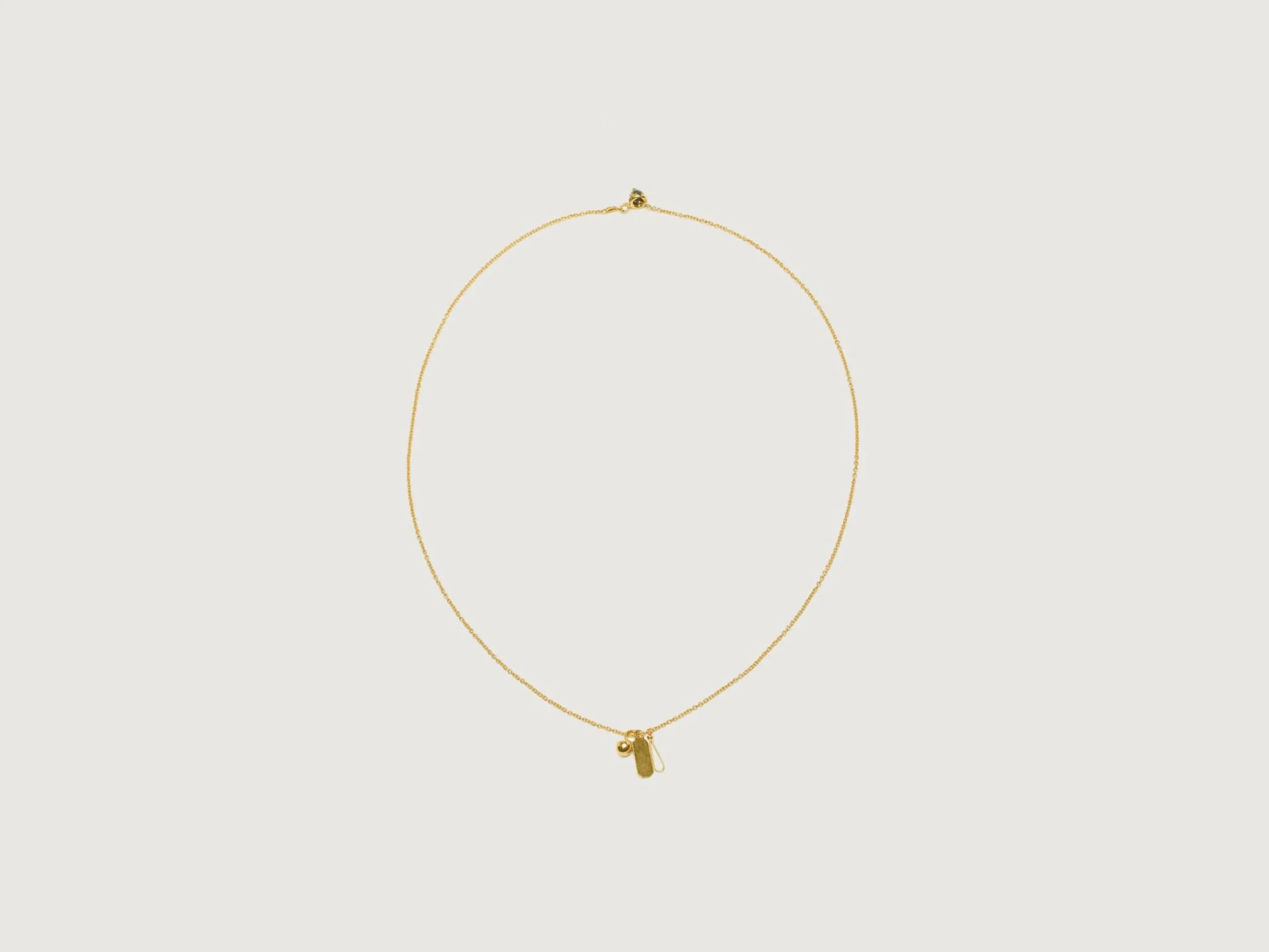 The GilbertGilbert Golden Pendant necklace features a long chain with golden pendants.