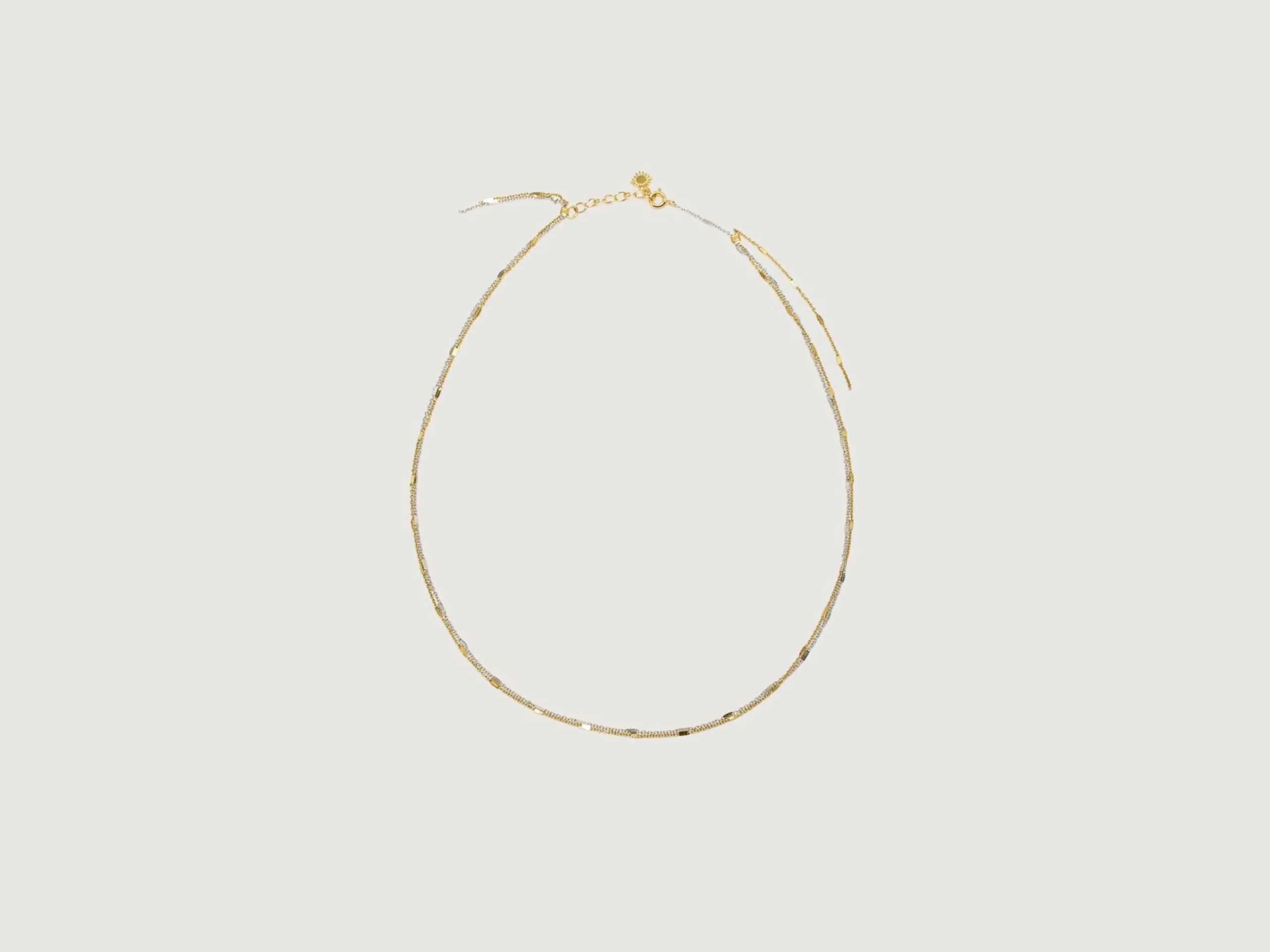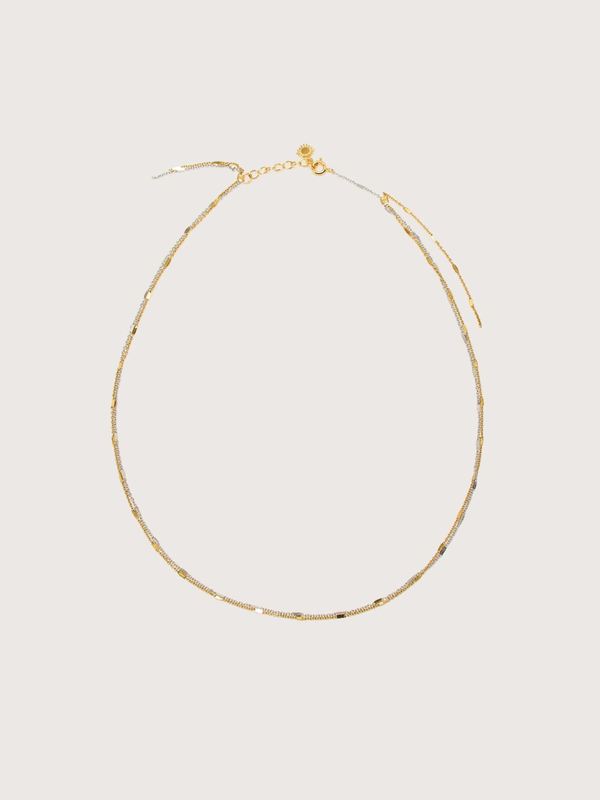 The Vadi Jewels Lydia necklace is a double chain of gold and silver.