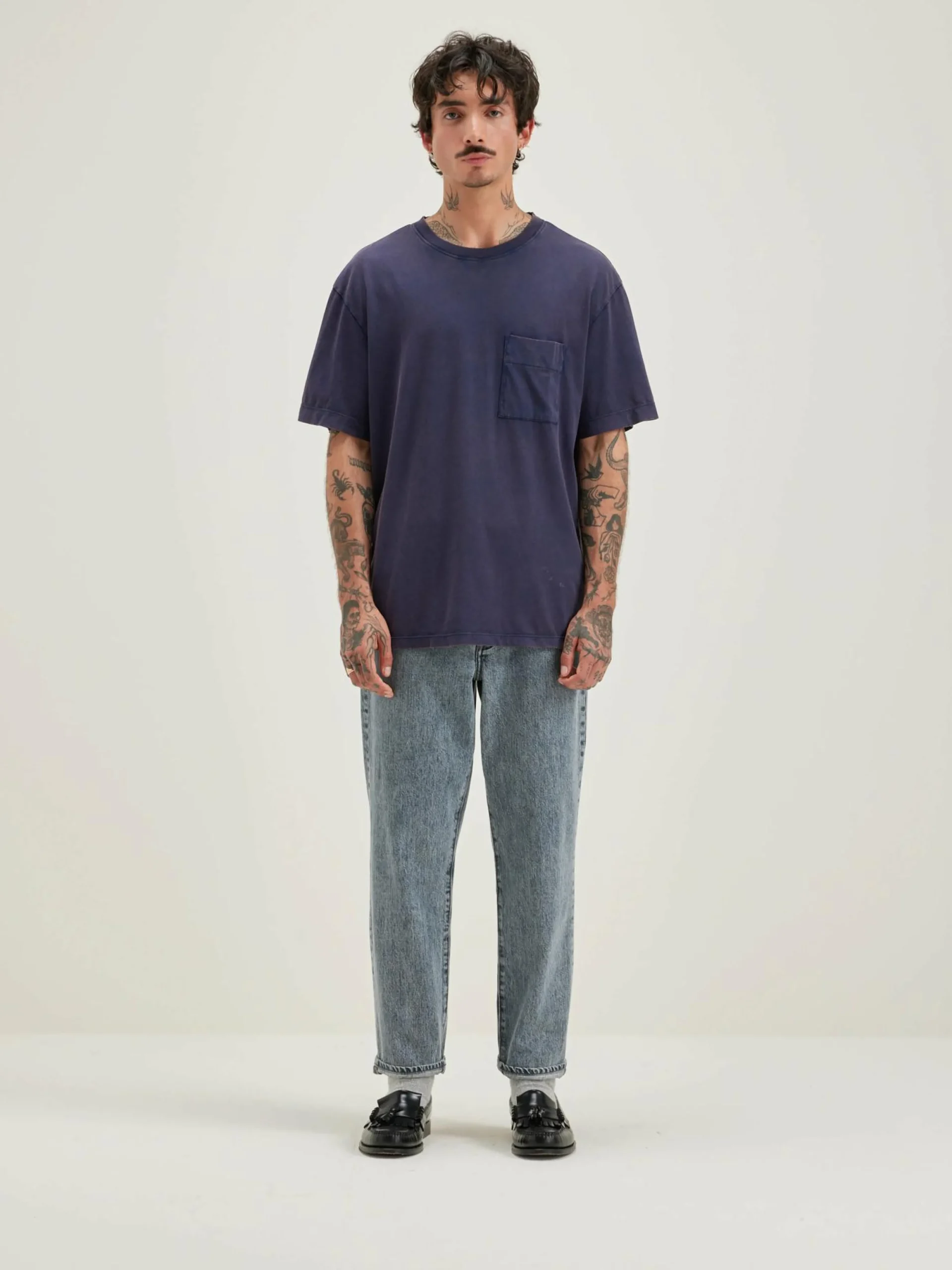 Oversized, inktblauw T-shirt met korte mouwen, van lichte katoenjersey.