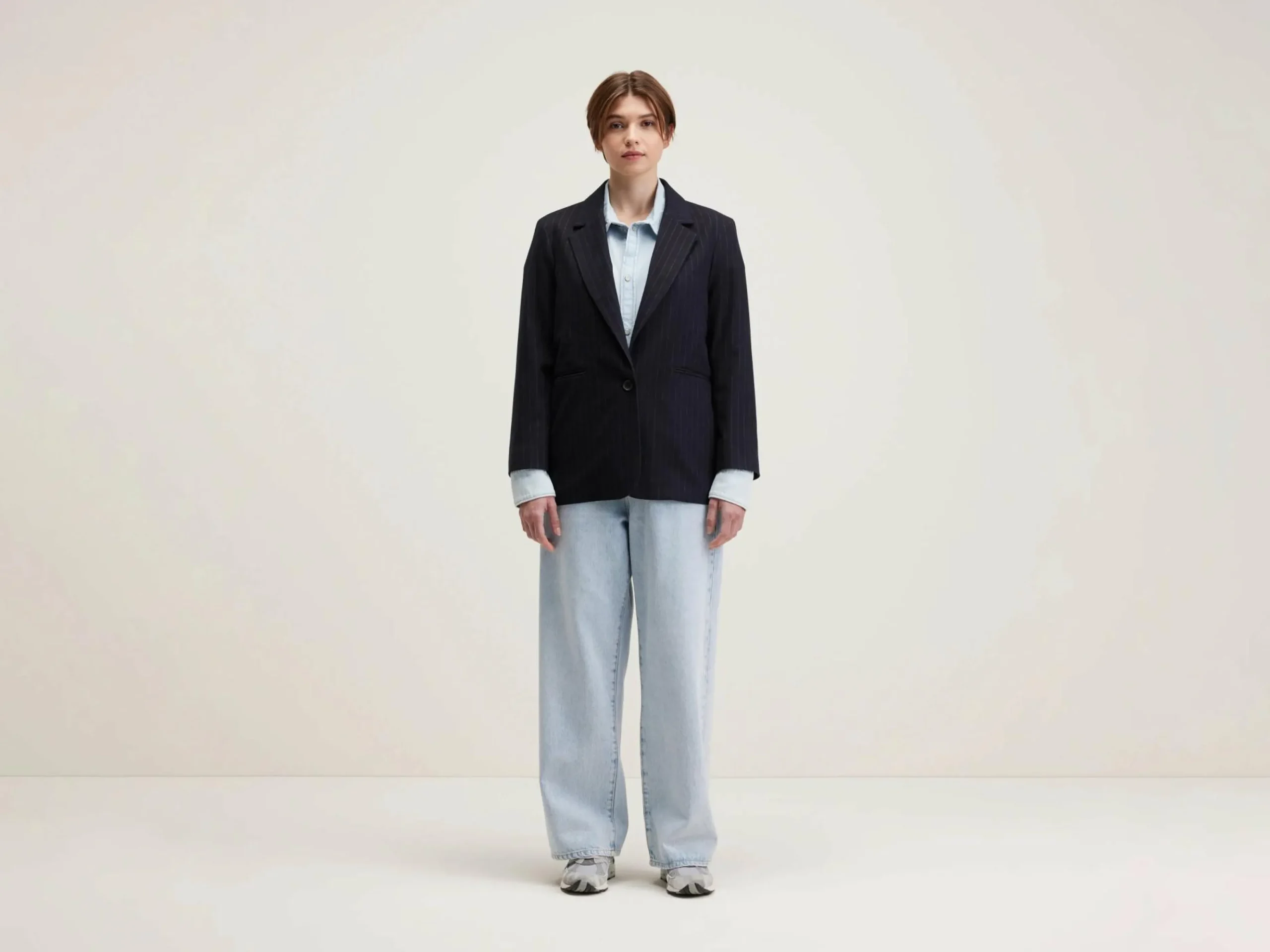 Klassieke relaxed fit flanellen blazer met krijtstreep.