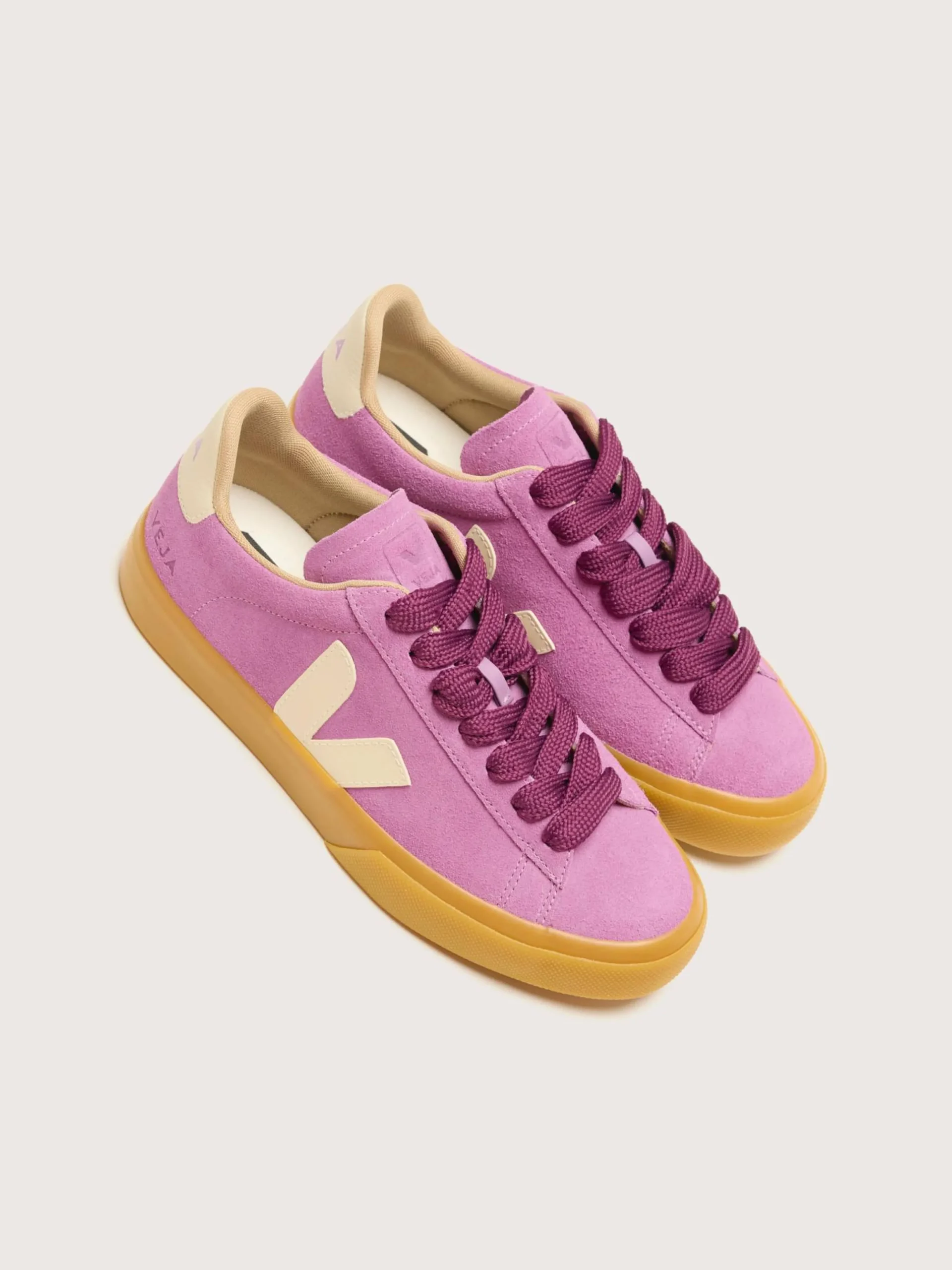 The Veja Campo Bold Mulberry Pierre suede sneakers feature recycled Amazonian rubber outsoles and wide tonal laces.