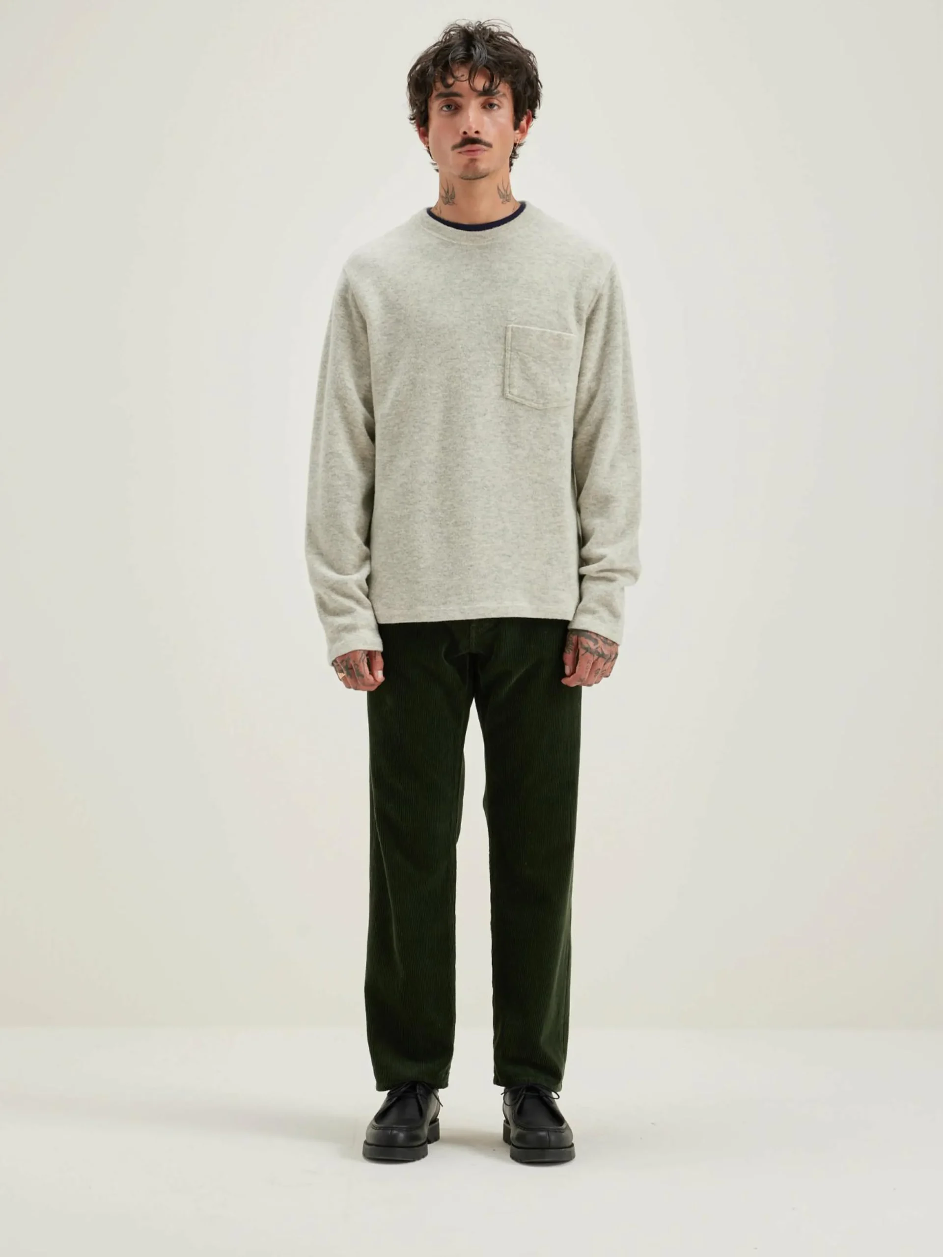 Klassieke rechte crewneck sweatshirt van heidegrijze, geborstelde katoen en wol jersey.