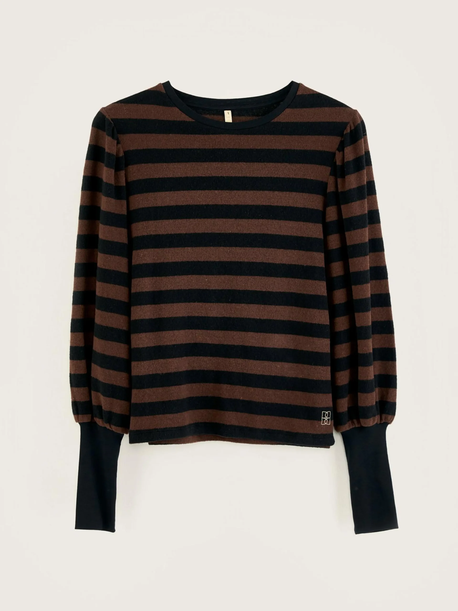 T-shirt met pofmouwen met aansluitende randen, van gestreepte jersey.