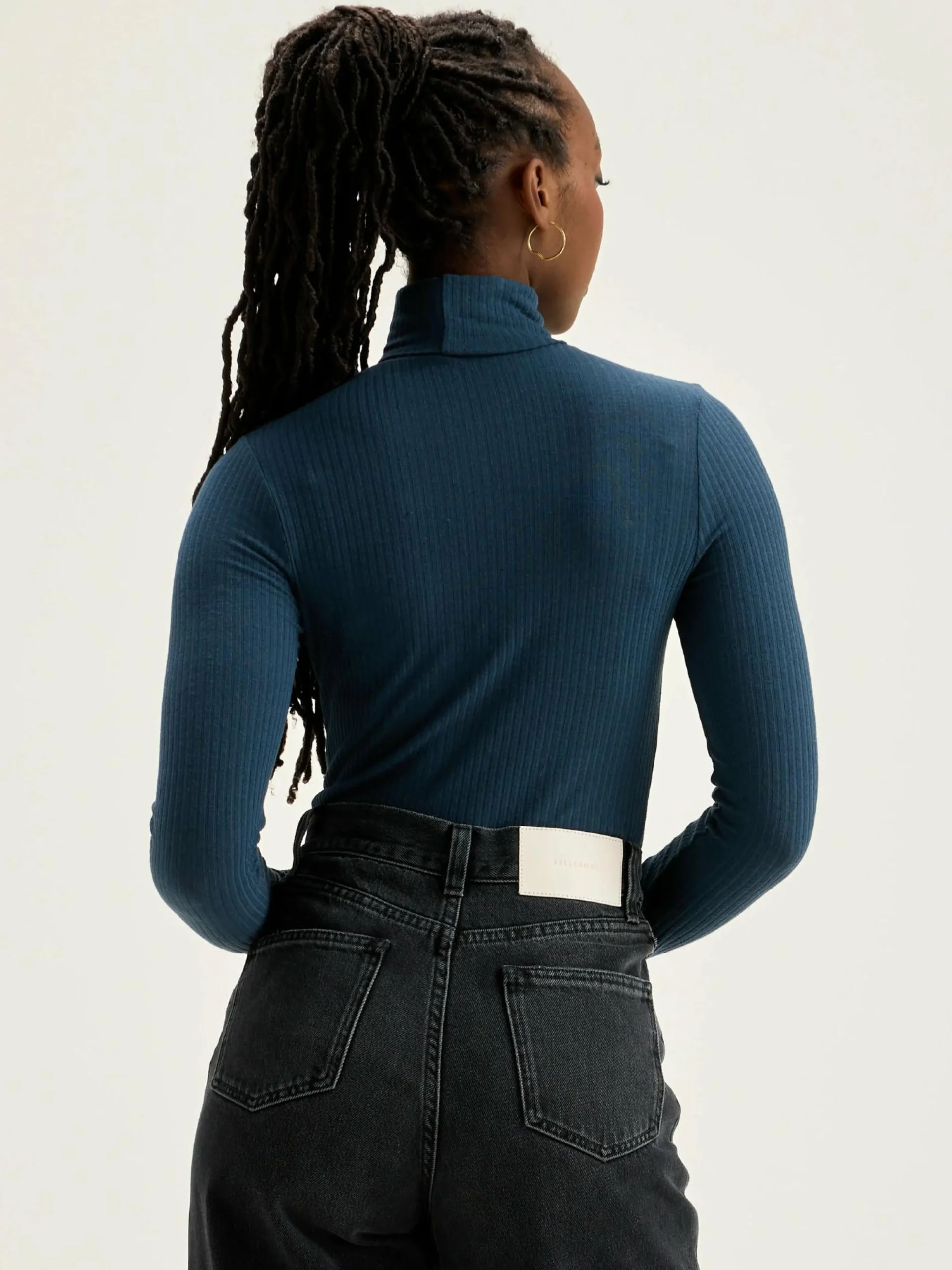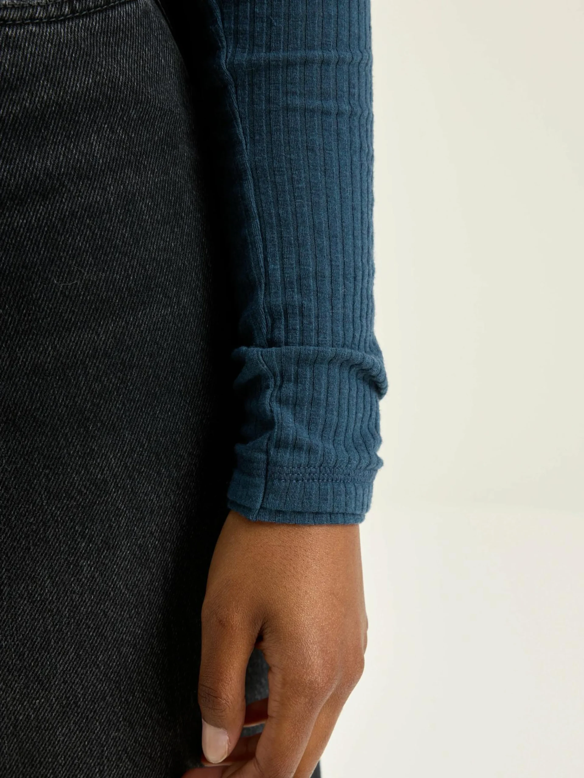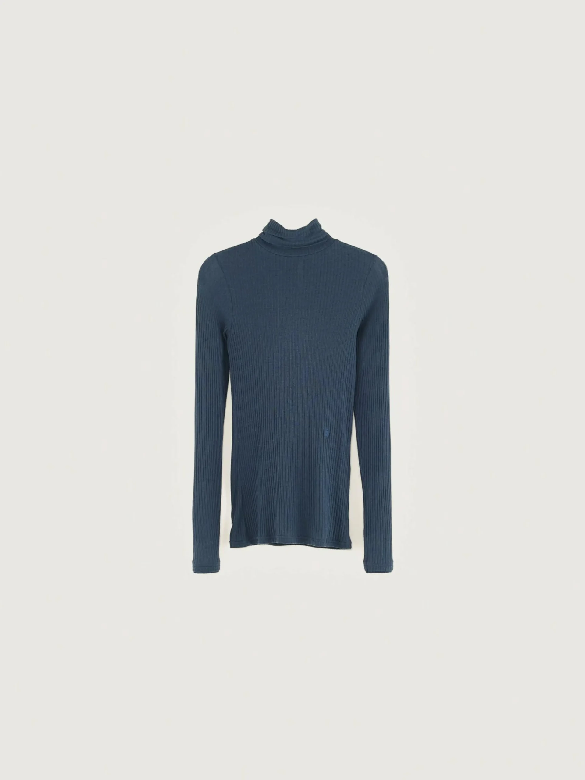 Blauw, aansluitend T-shirt met lange mouwen en een twisted turtle neck.