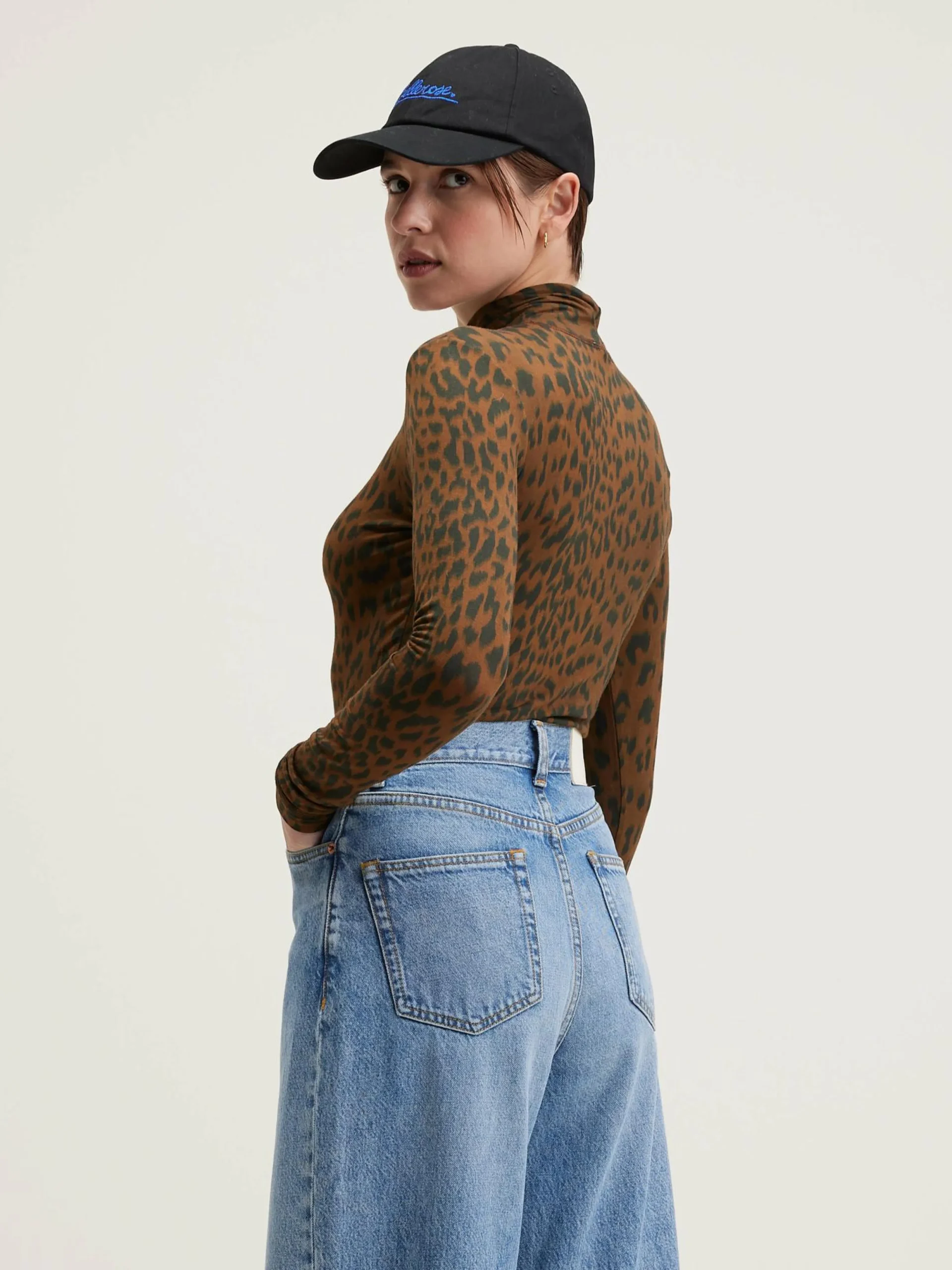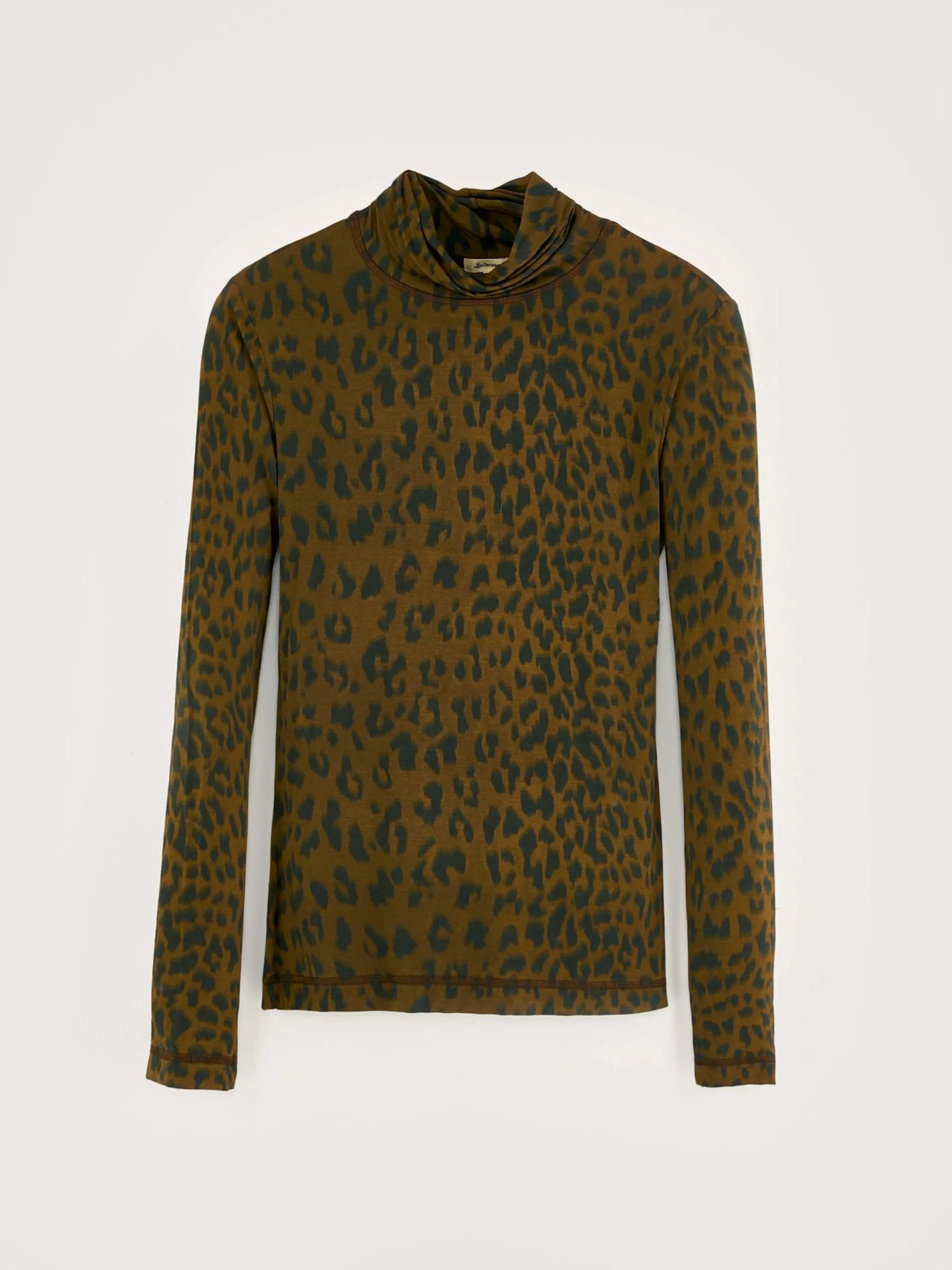 Slim fit T-shirt met rolkraag en luipaardprint, voelt aan als een tweede huid.