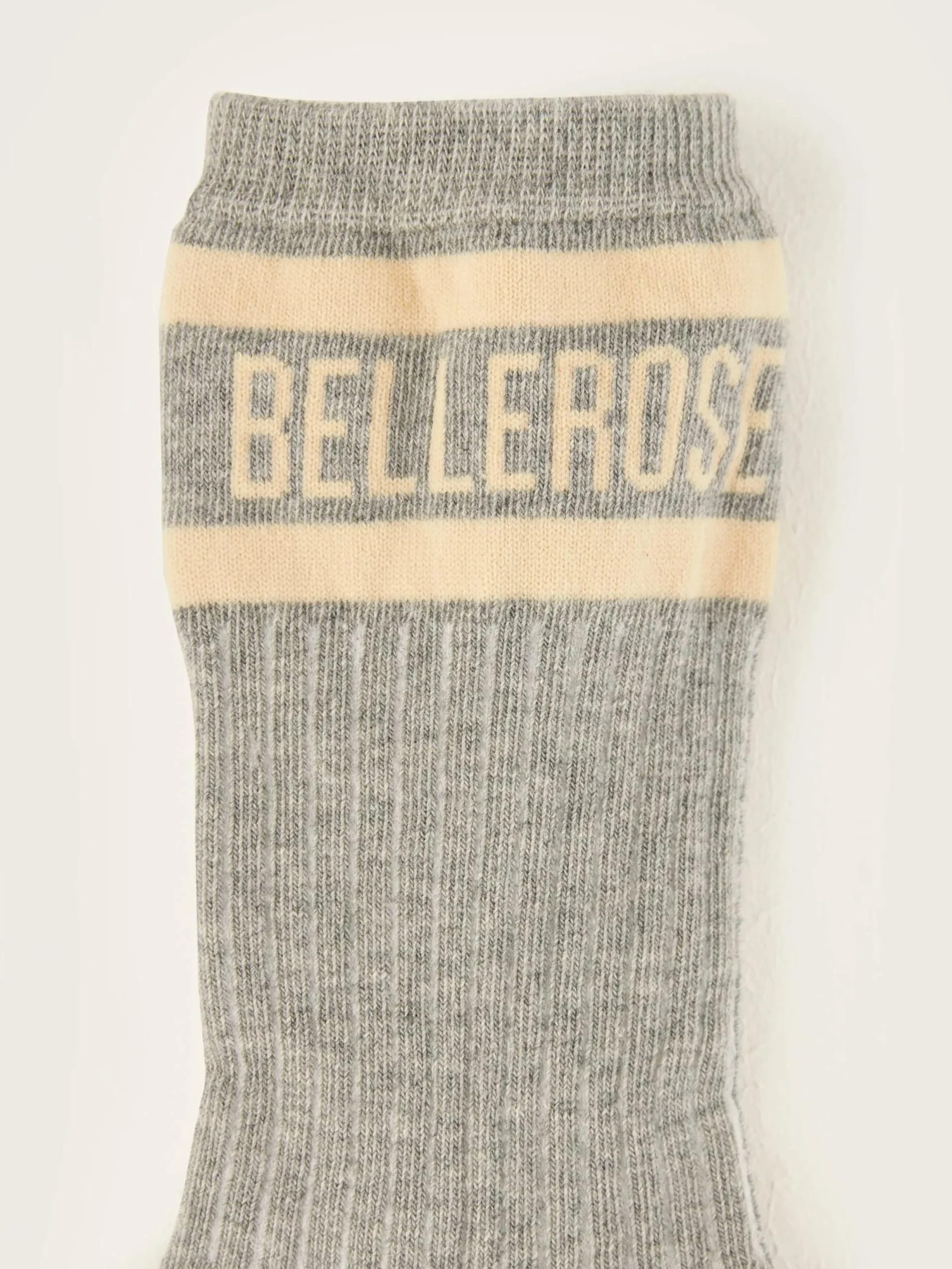 Klassieke sokken in heidegrijs met Bellerose-logo in ecru op de enkel.