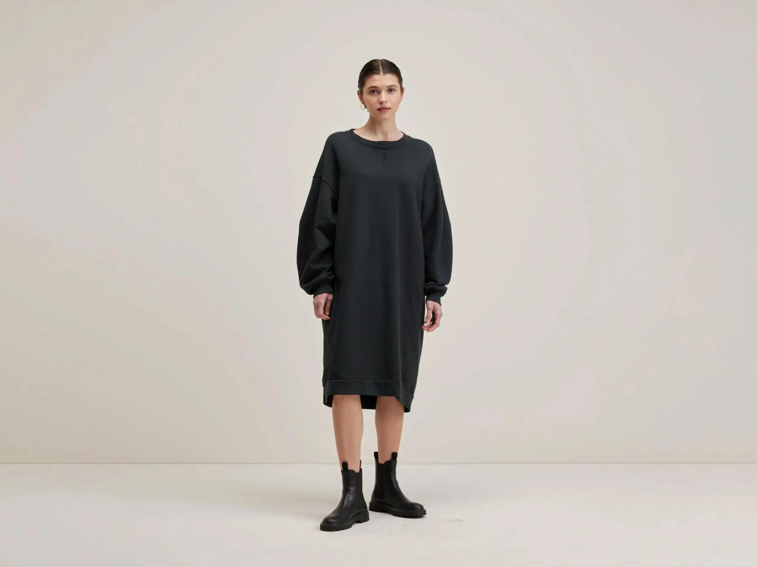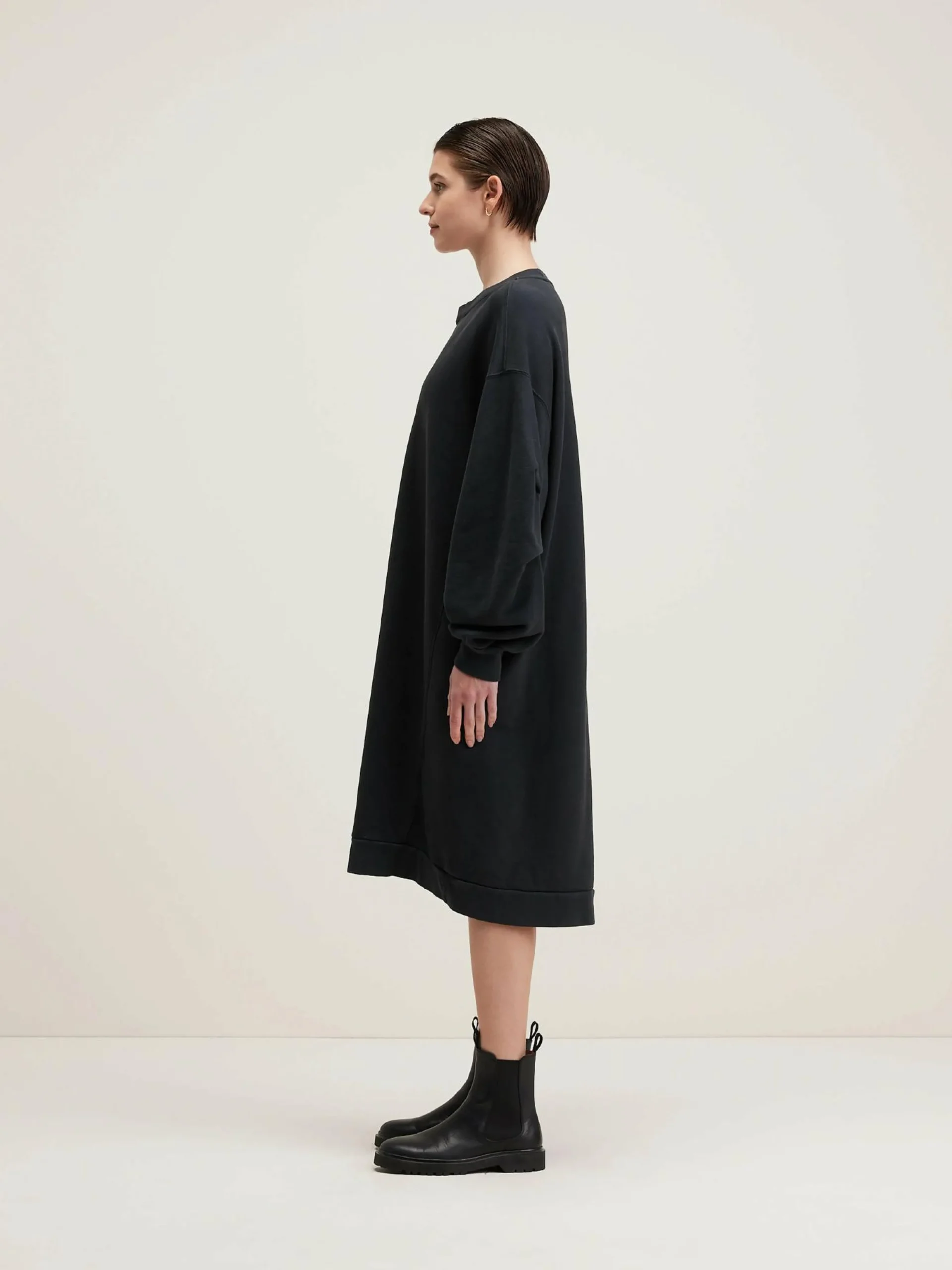 Lange, zwarte sweatshirtjurk van katoenjersey.