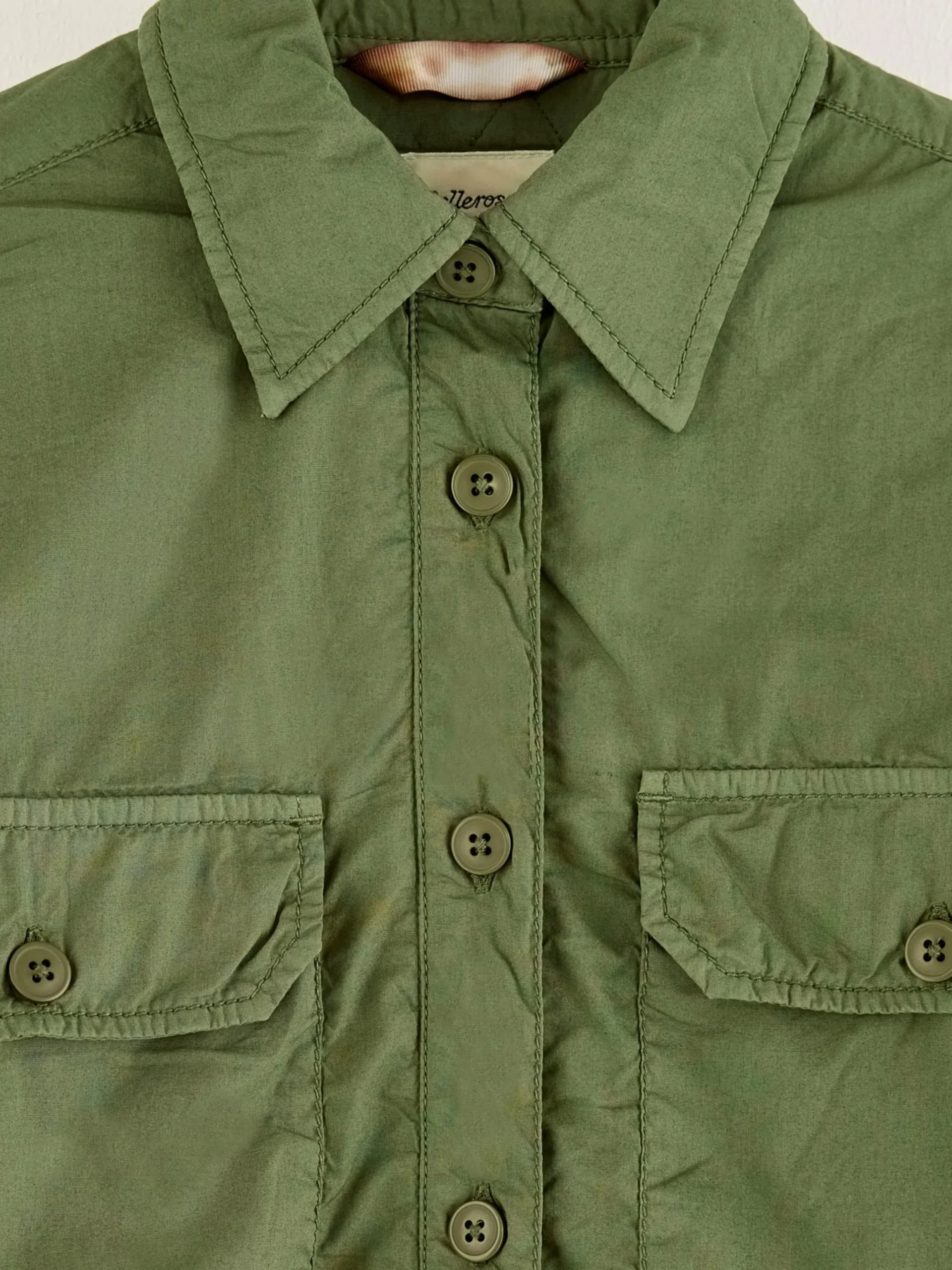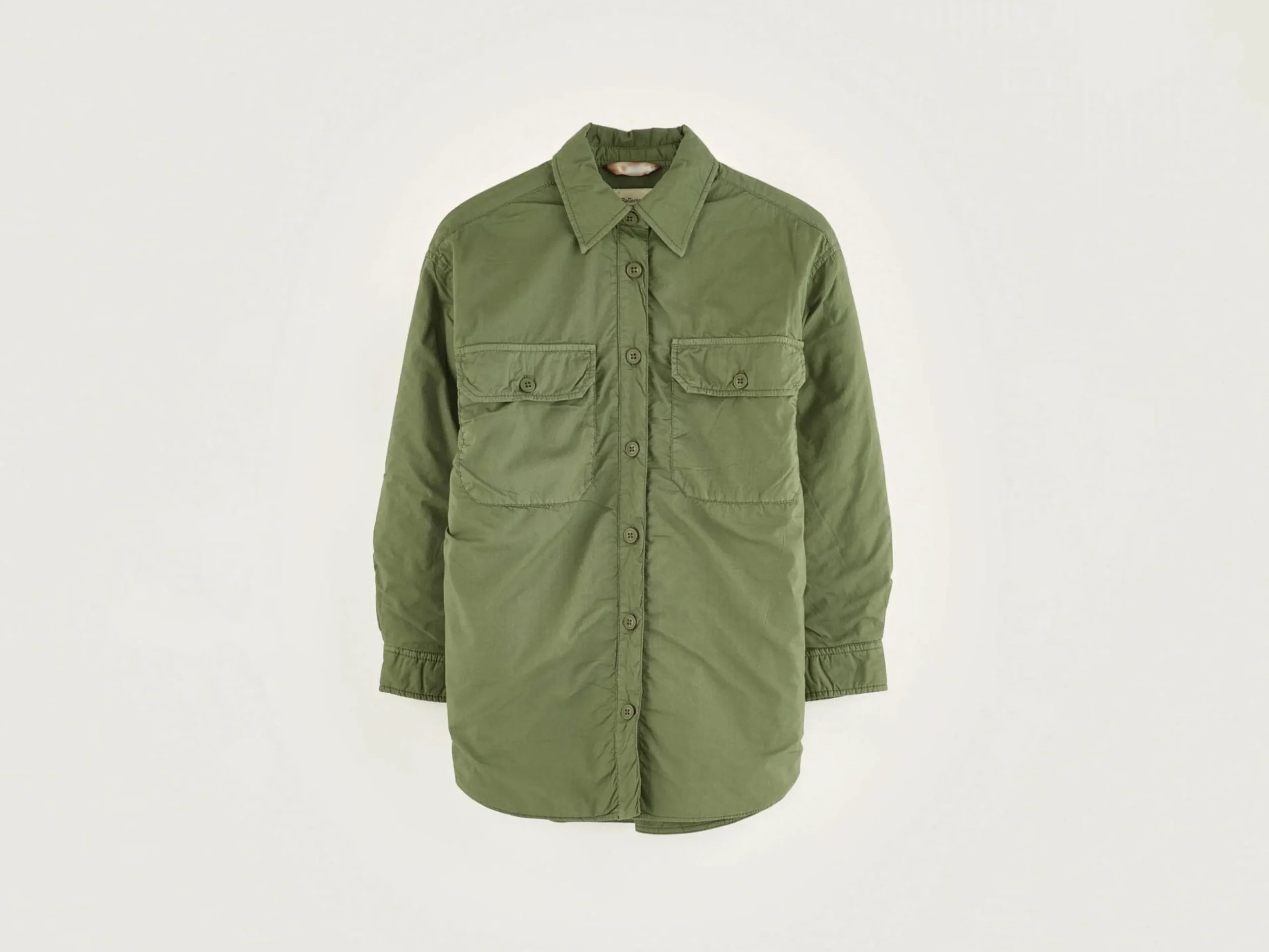 Kakigroen, oversized en gewatteerd overshirt van popeline katoen.