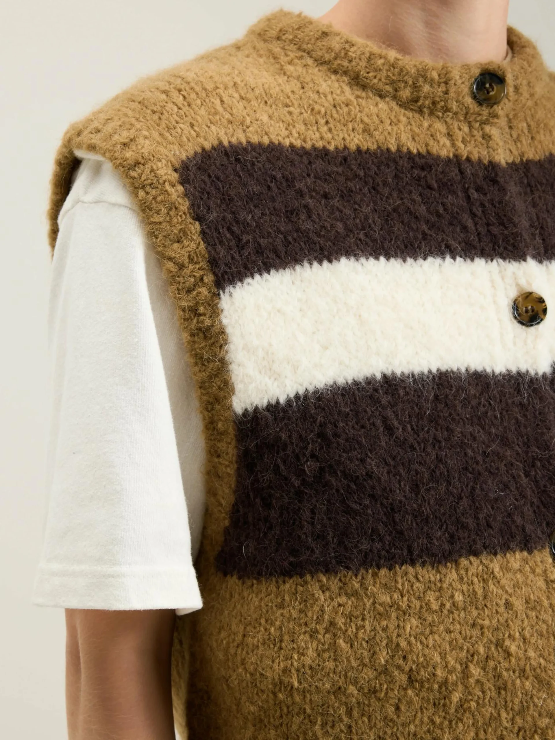 Mouwloze debardeur met veelkleurige strepen.
