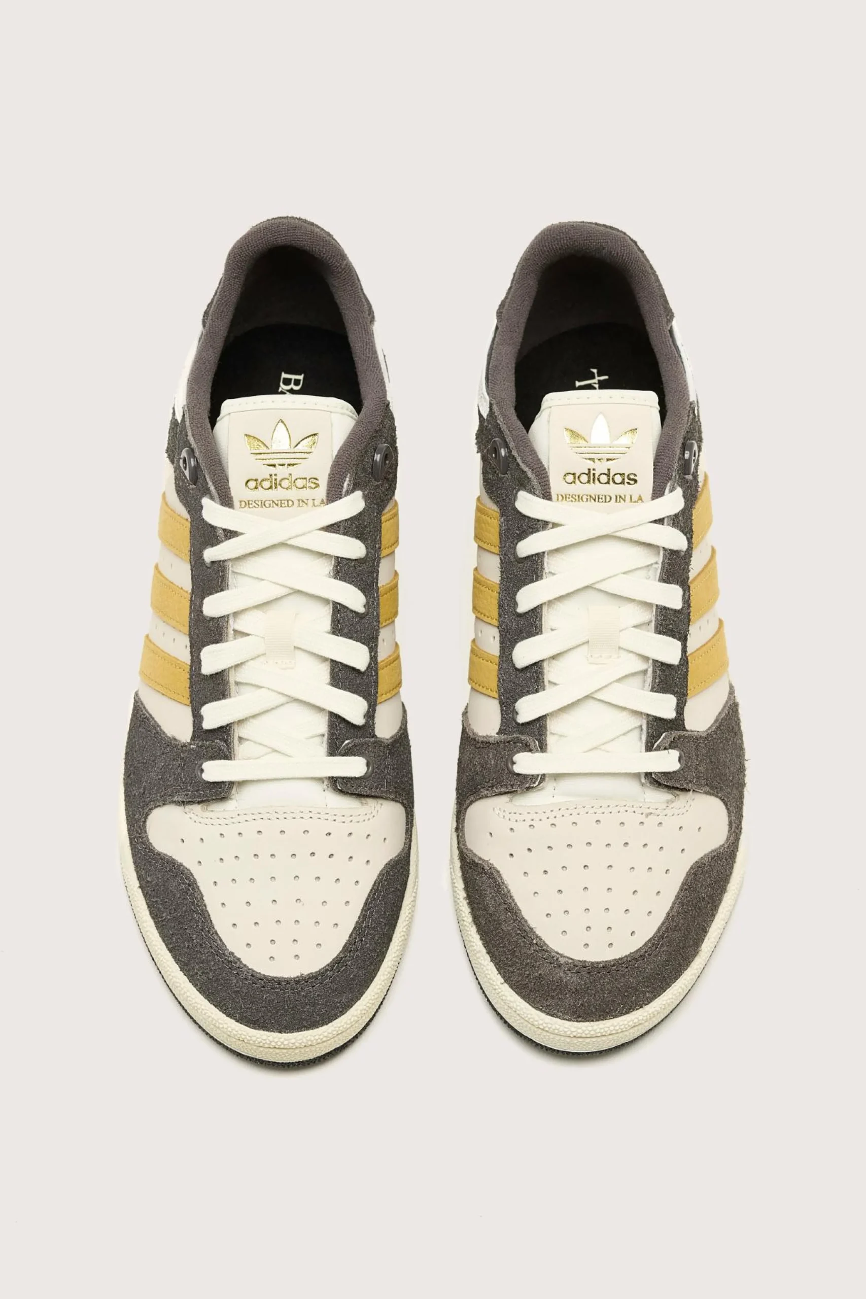 The Adidas Centennial RM sneakers are inspired by 80s basketball style, featuring a combination of leather and suede with the iconic 3-stripe branding.