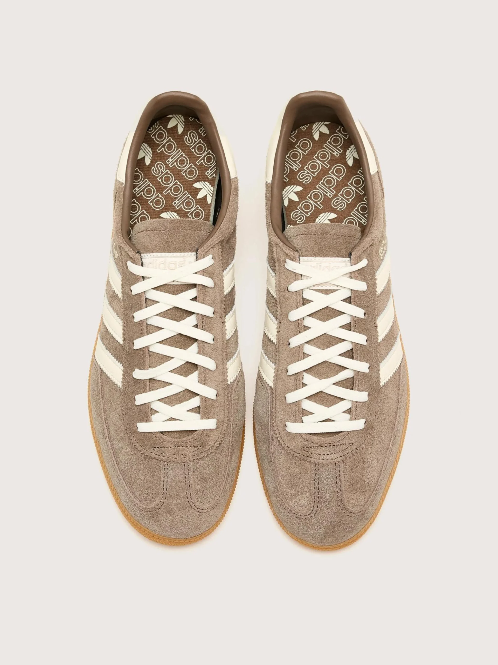 De low-profile Adidas Handball Spezial sneakers hebben een premium suède bovenwerk, opvallende details en een T-neus.