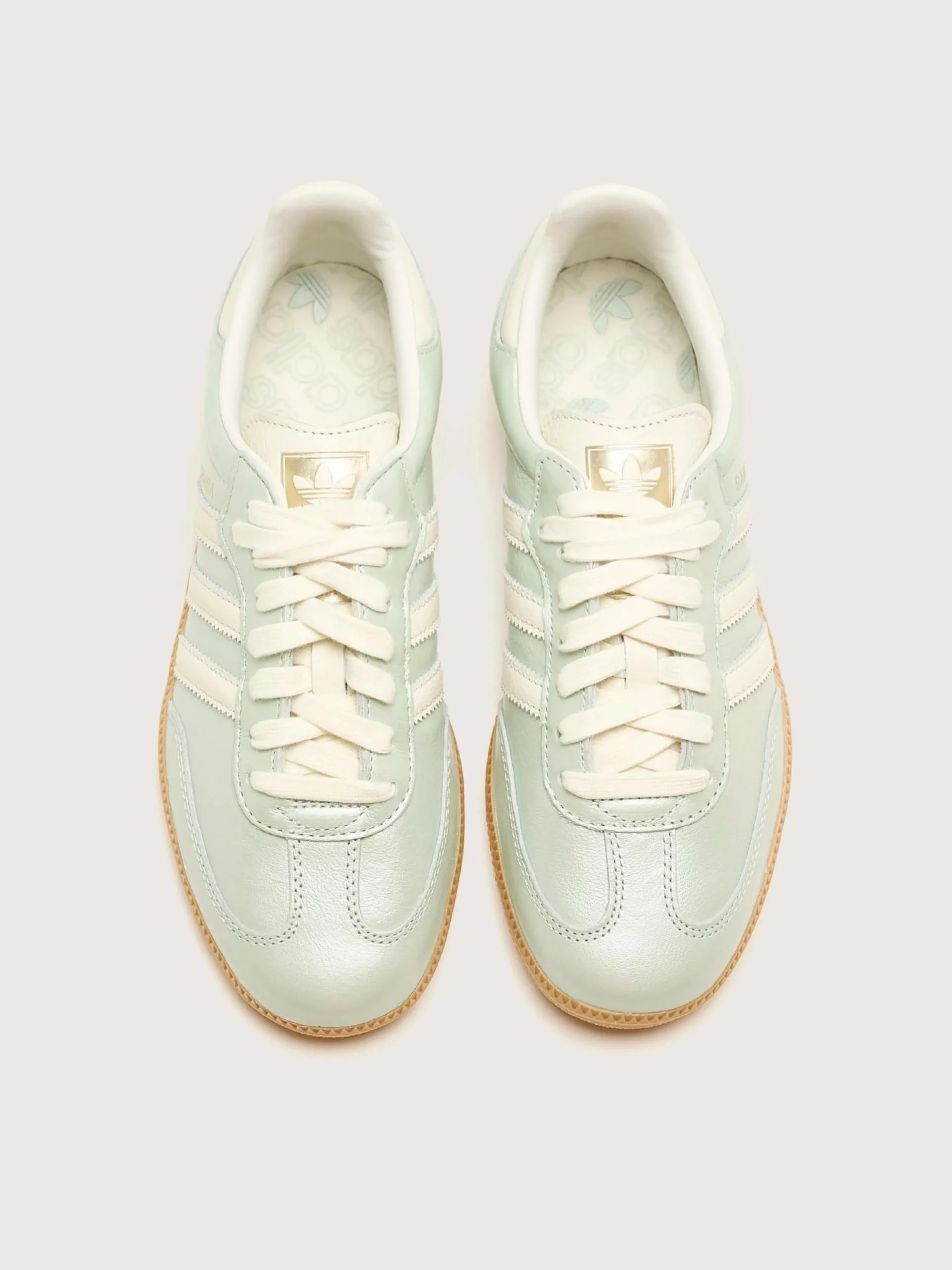 De iconische Adidas Samba OG sneakers hebben een glad lederen bovenwerk en een duurzame rubberen buitenzool.