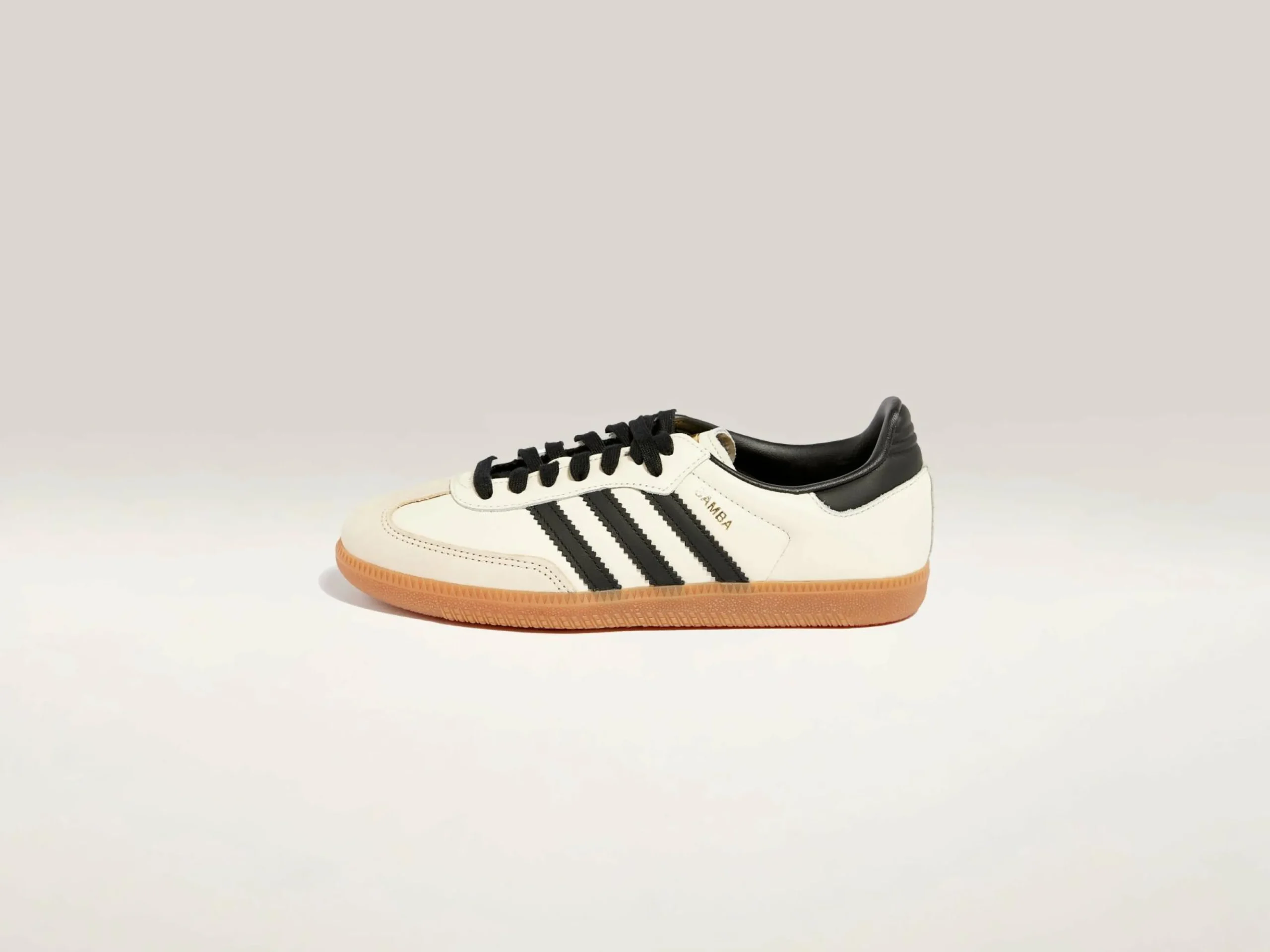 De Adidas Samba OG hebben een bovenkant van premium leder en overlays van nubuck, die samen een iconisch silhouet vormen met gouden accenten en de historische 3-stripes.
