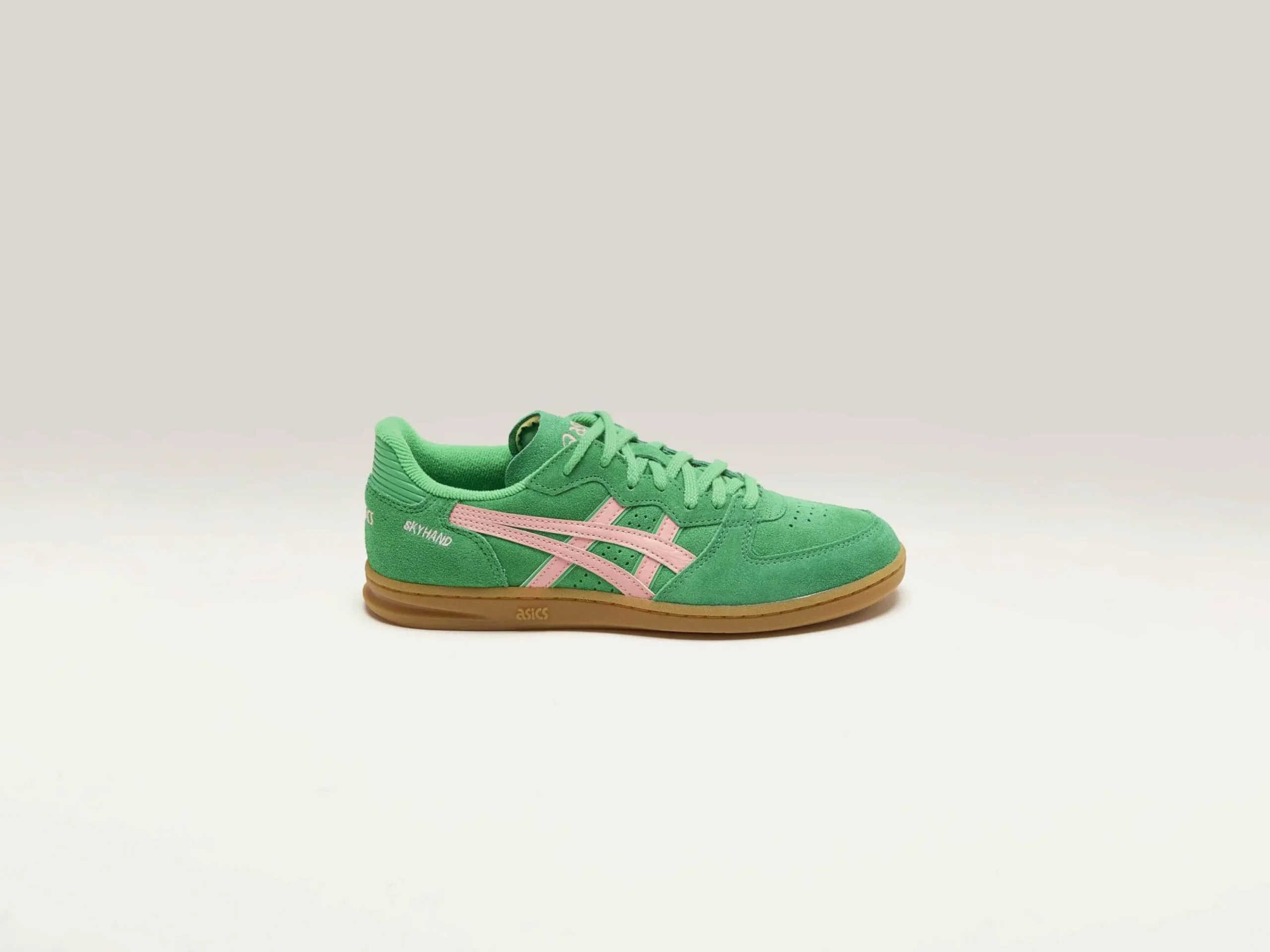De Asics Skyhand OG handbal heritage sneakers hebben een slank court silhouet met een retro suède bovenwerk.