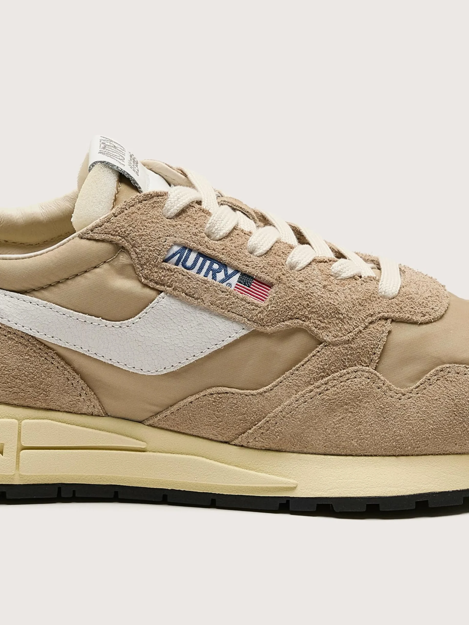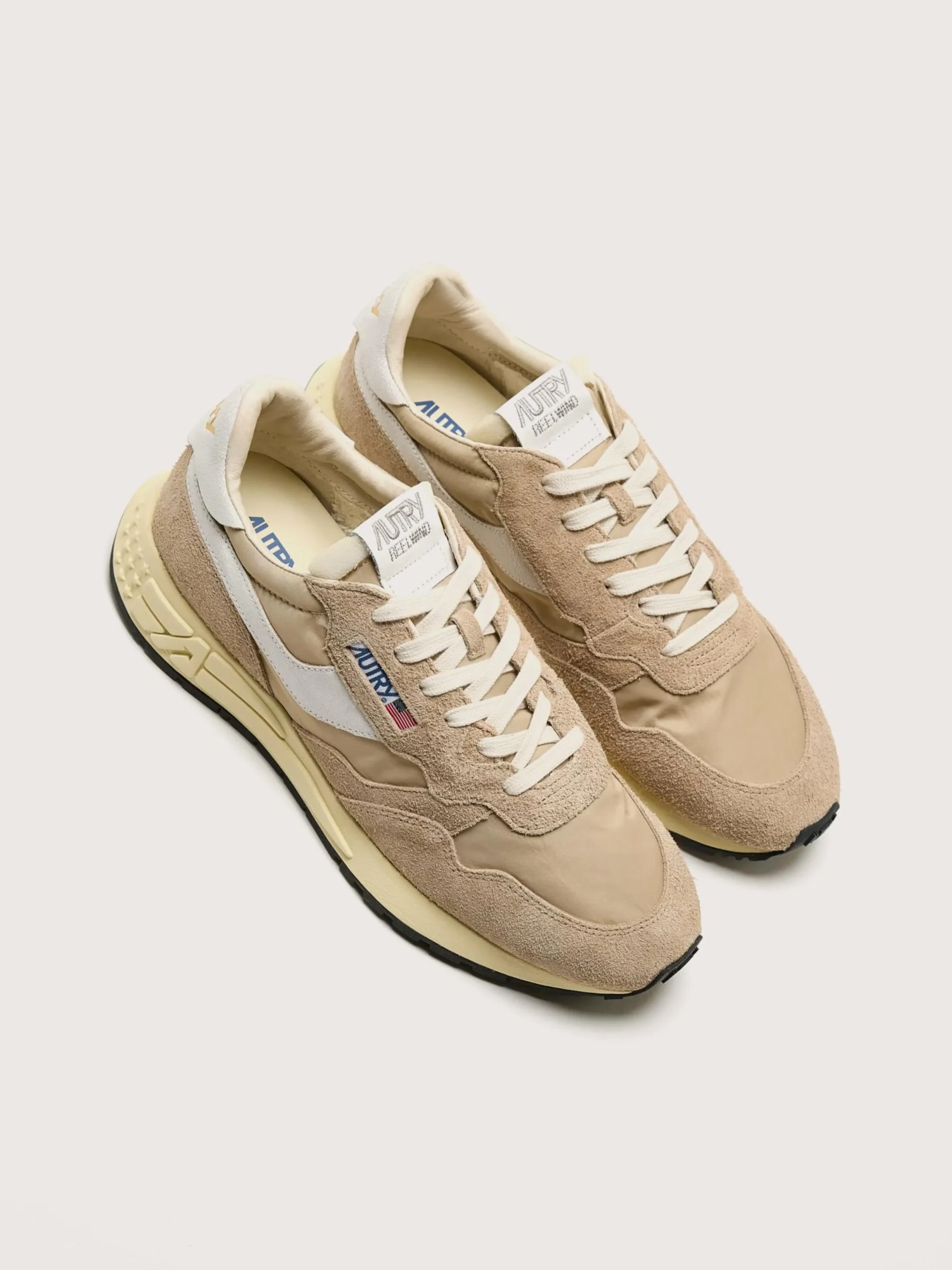 De Autry Reelwind low-top sneakers zijn een unieke vintage esthetiek en een combinatie van nylon, leder en suède.