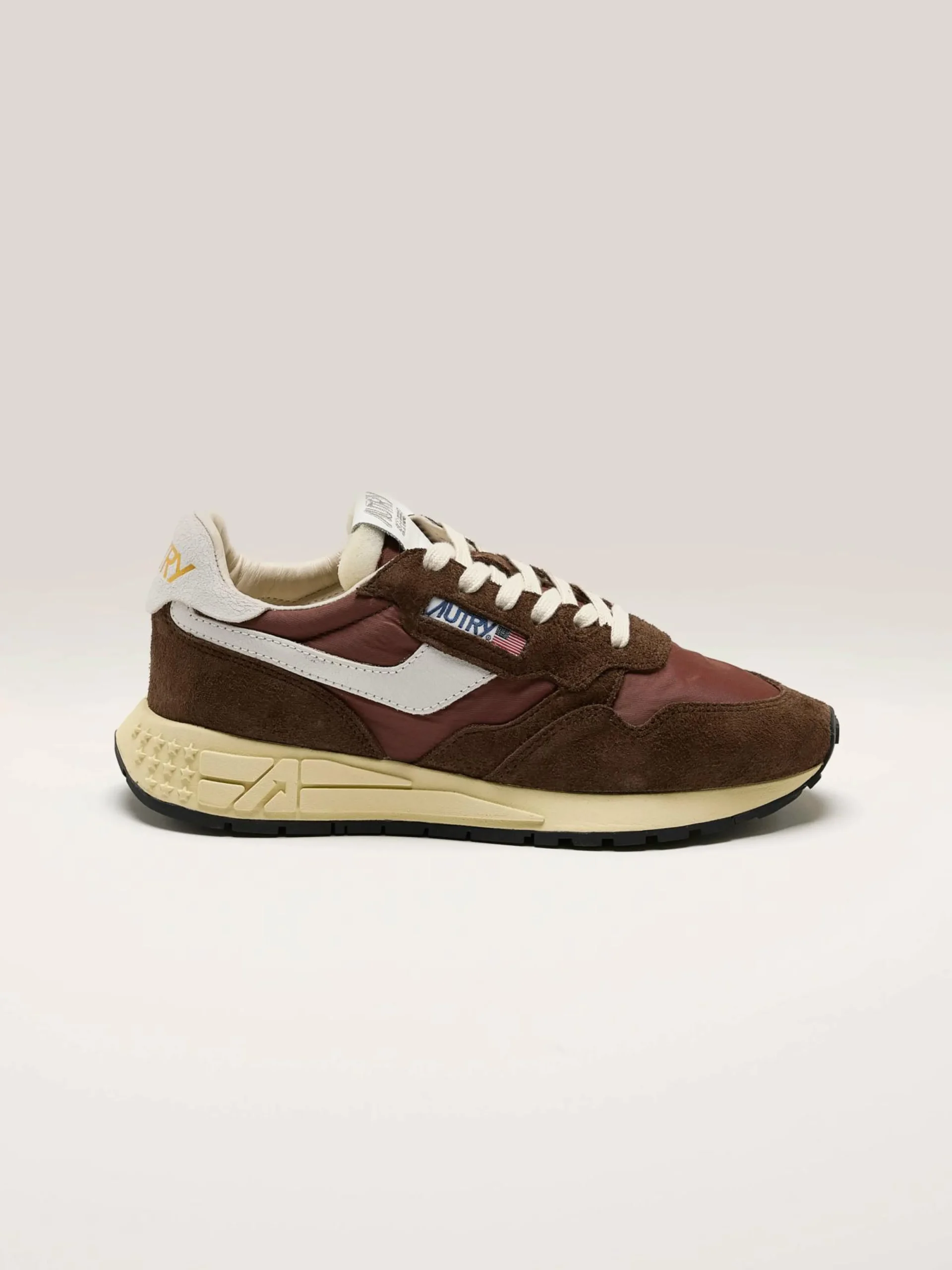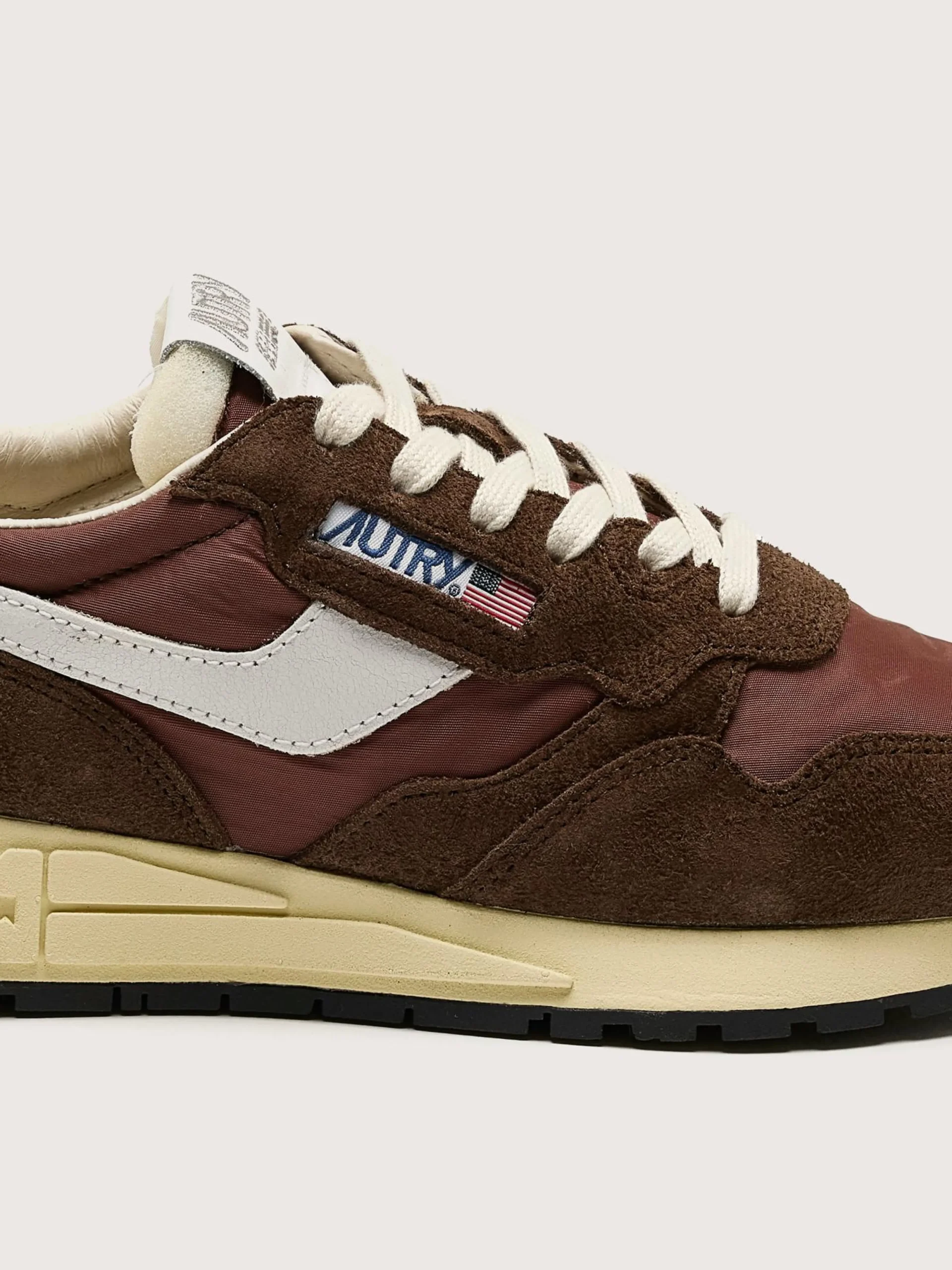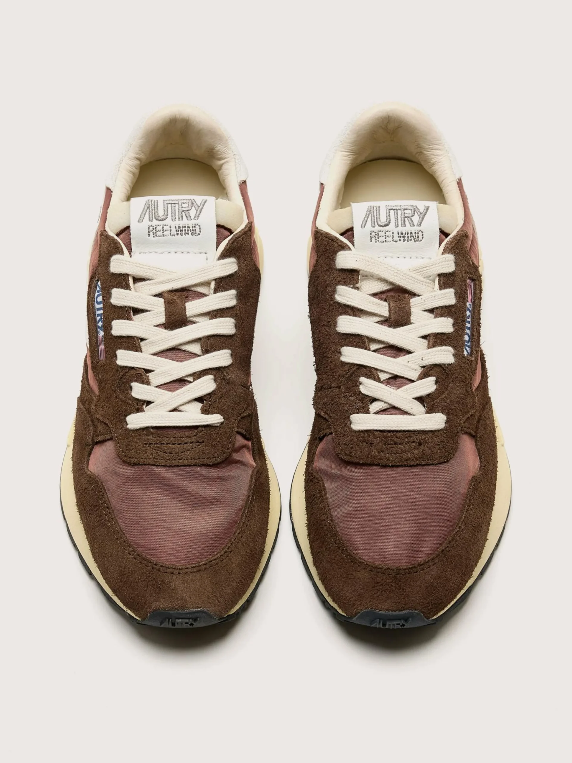 De Autry Reelwind low-top sneakers zijn een unieke vintage esthetiek en een combinatie van nylon, leder en suède.