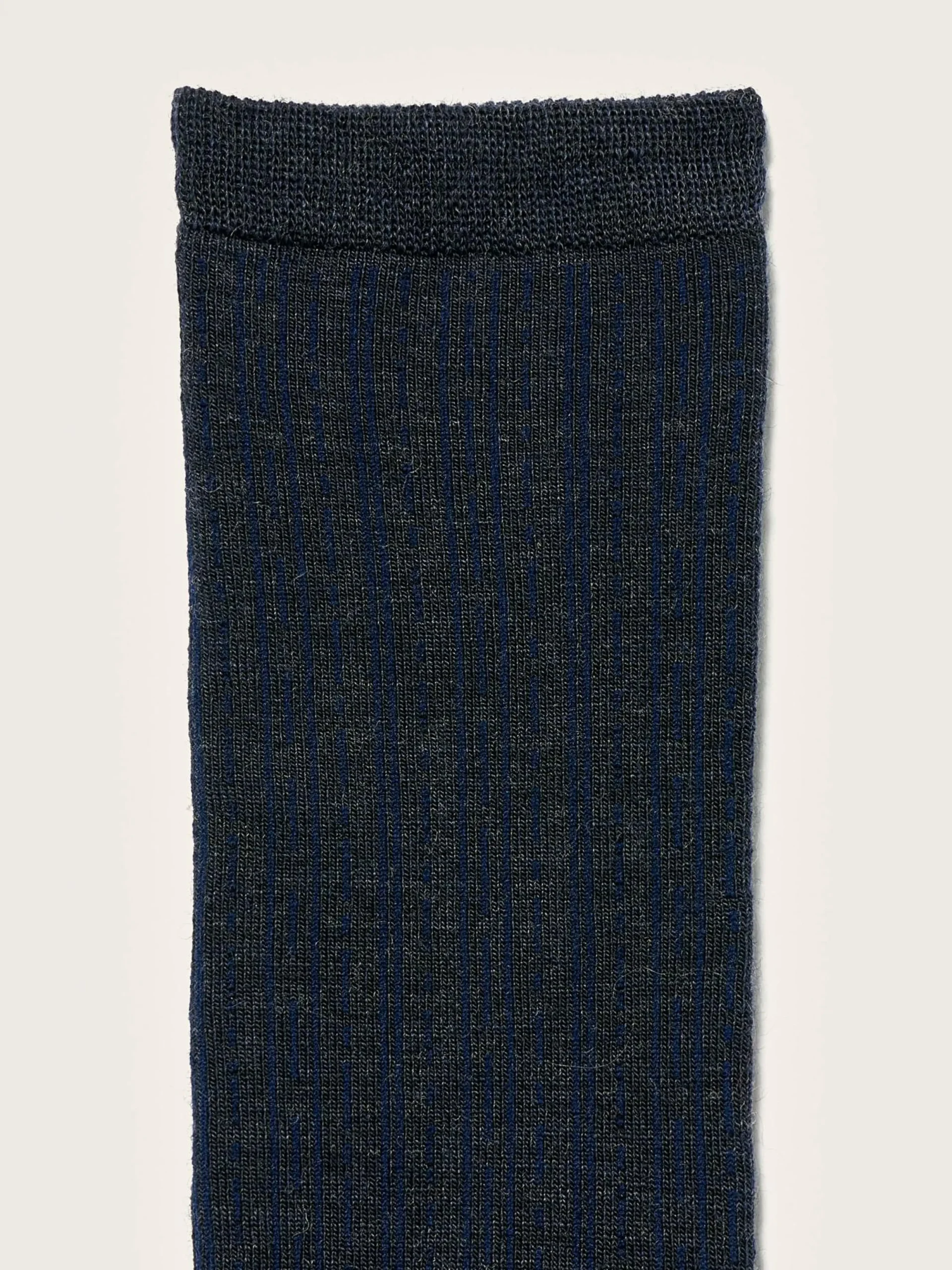 Klassieke, blauwe sokken met onregelmatige ribbels.