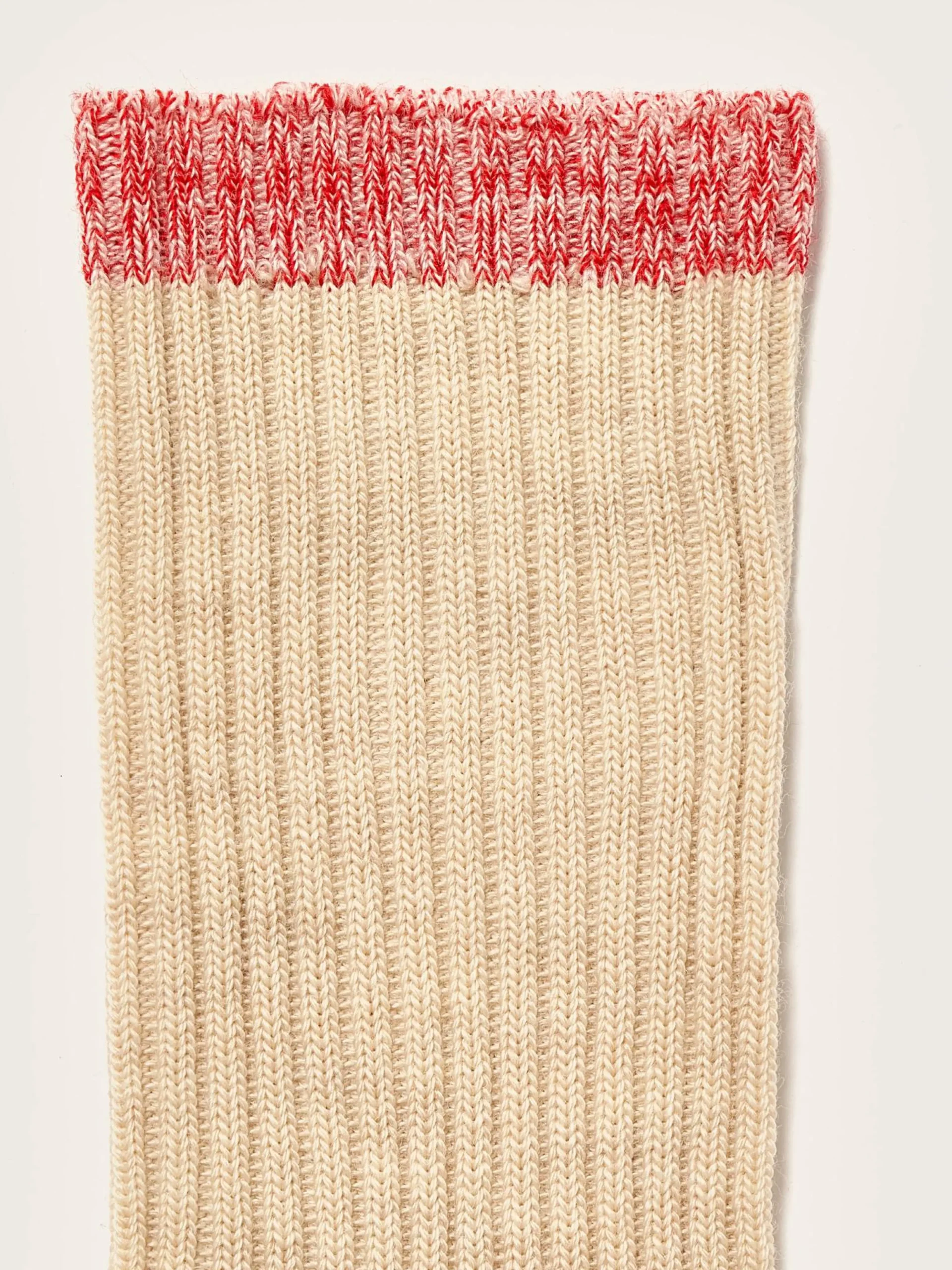 Klassieke ecru sokken met contrasterende randen, hielen en tenen van meerkleurig garen.
