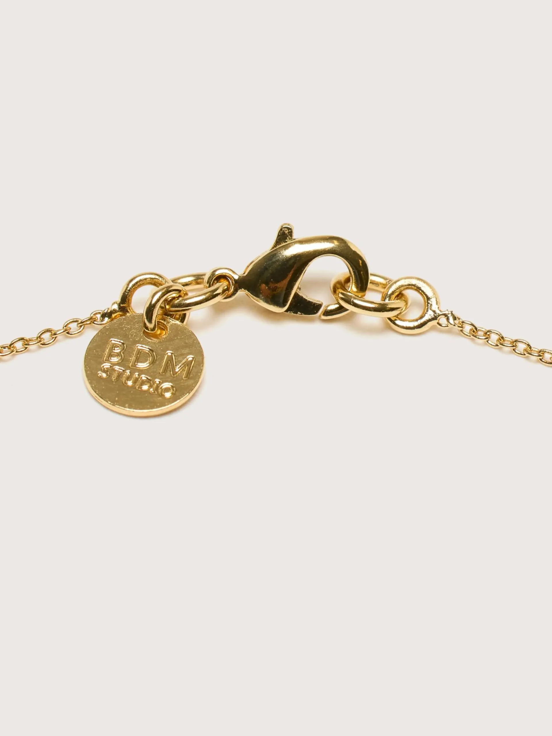 De BDM Studio Melia ketting is een delicate 24k vergulde schakel versierd met een klein trio Swarovski strass-steentjes.