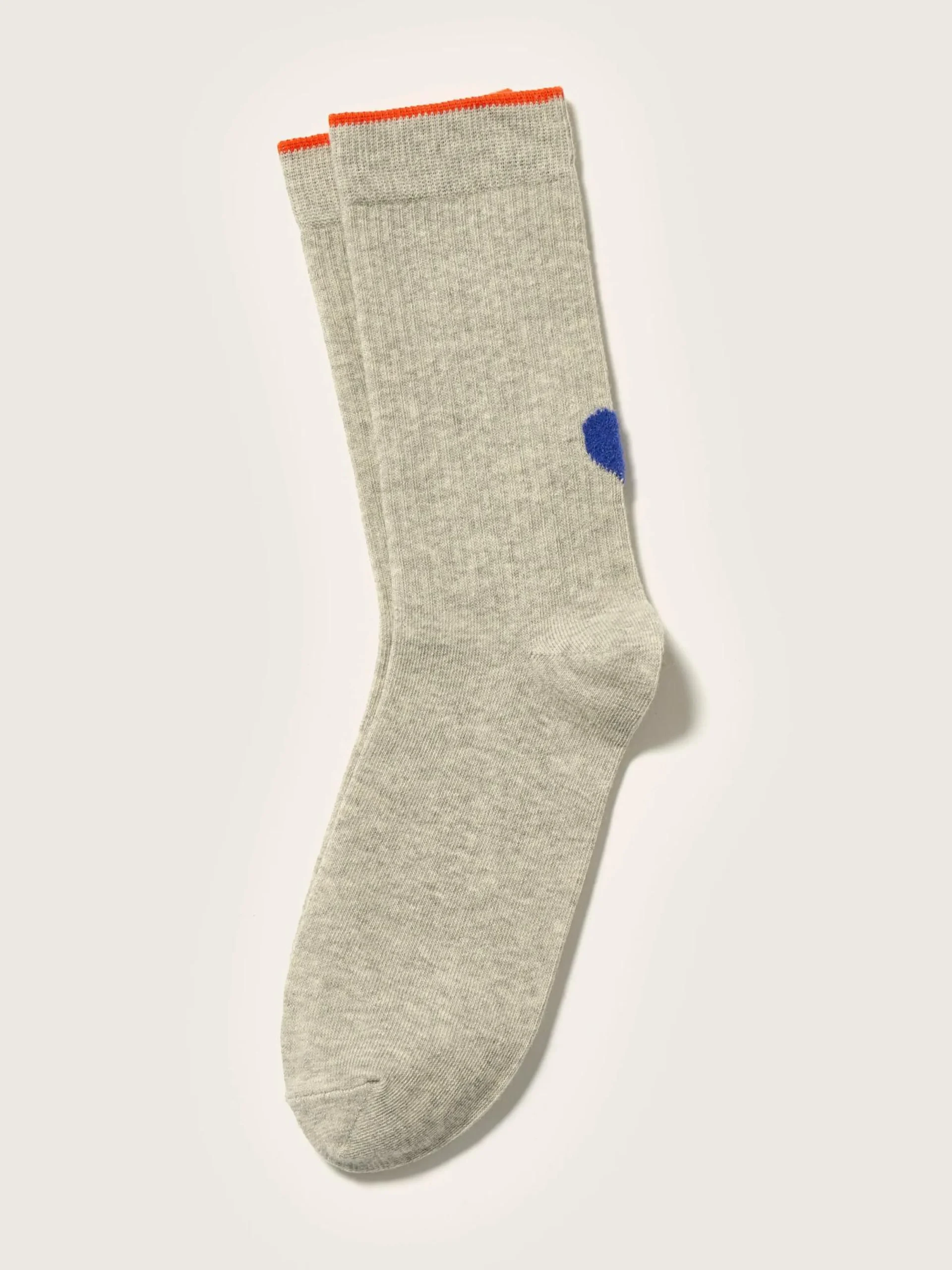 Klassieke, heidegrijze sokken met een contrasterend hart op de hiel.