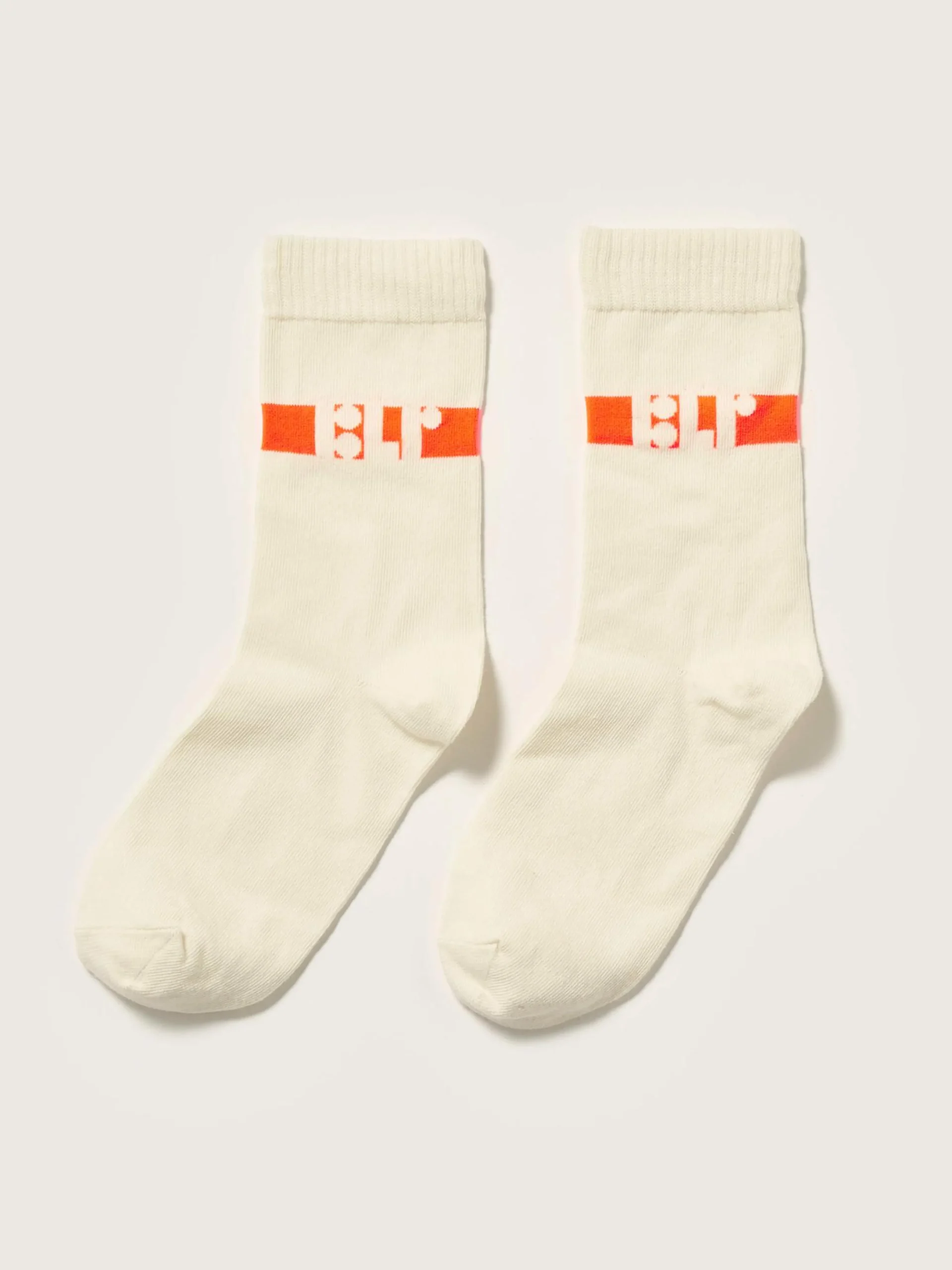 Klassieke BLR sokken in ecru met contrasterend logo op de enkel.