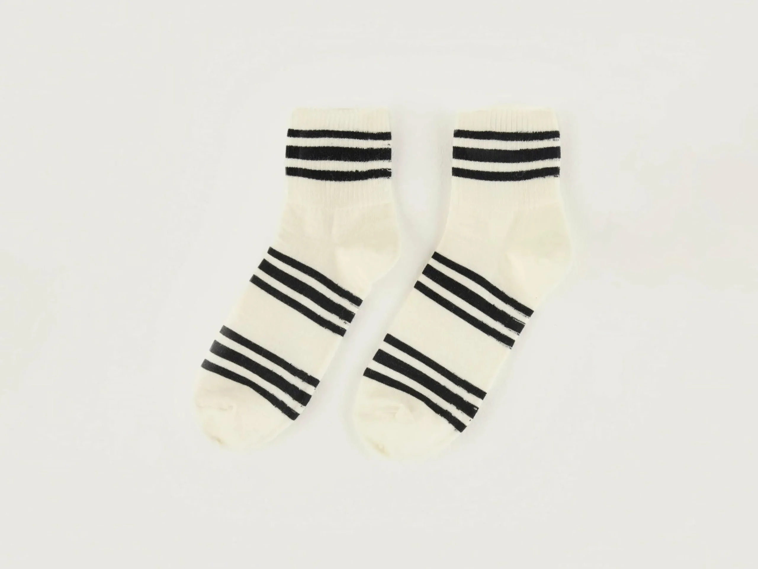 Witte sportsokken met zwarte strepen.