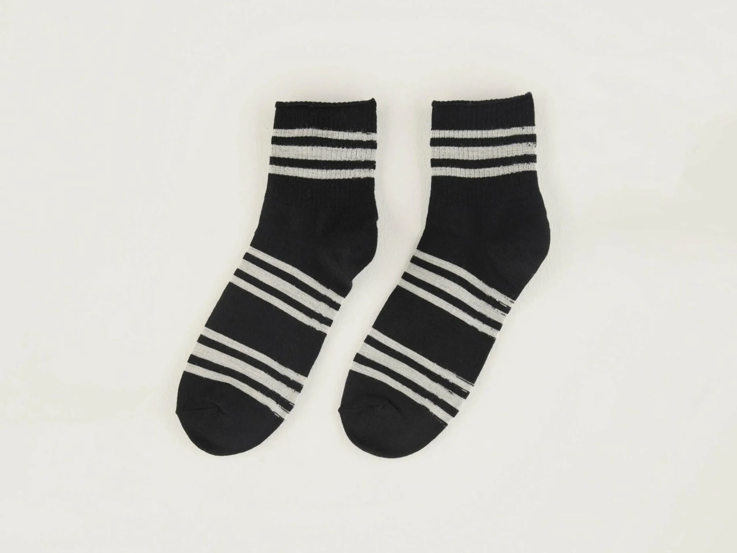 Zwarte sportsokken met grijzestrepen.