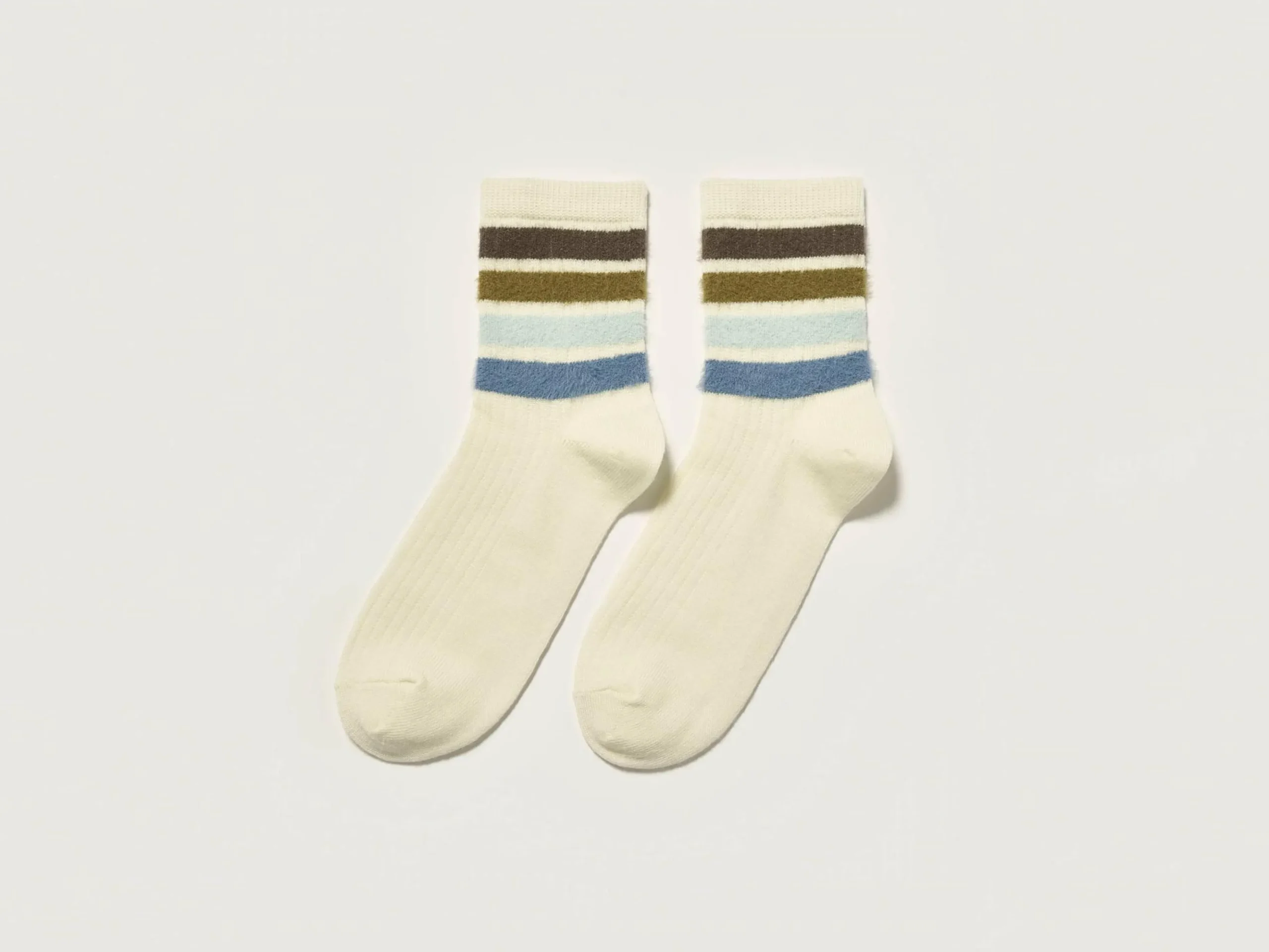 Klassieke ecru sokken met contrasterende strepen van fluwelig garen.