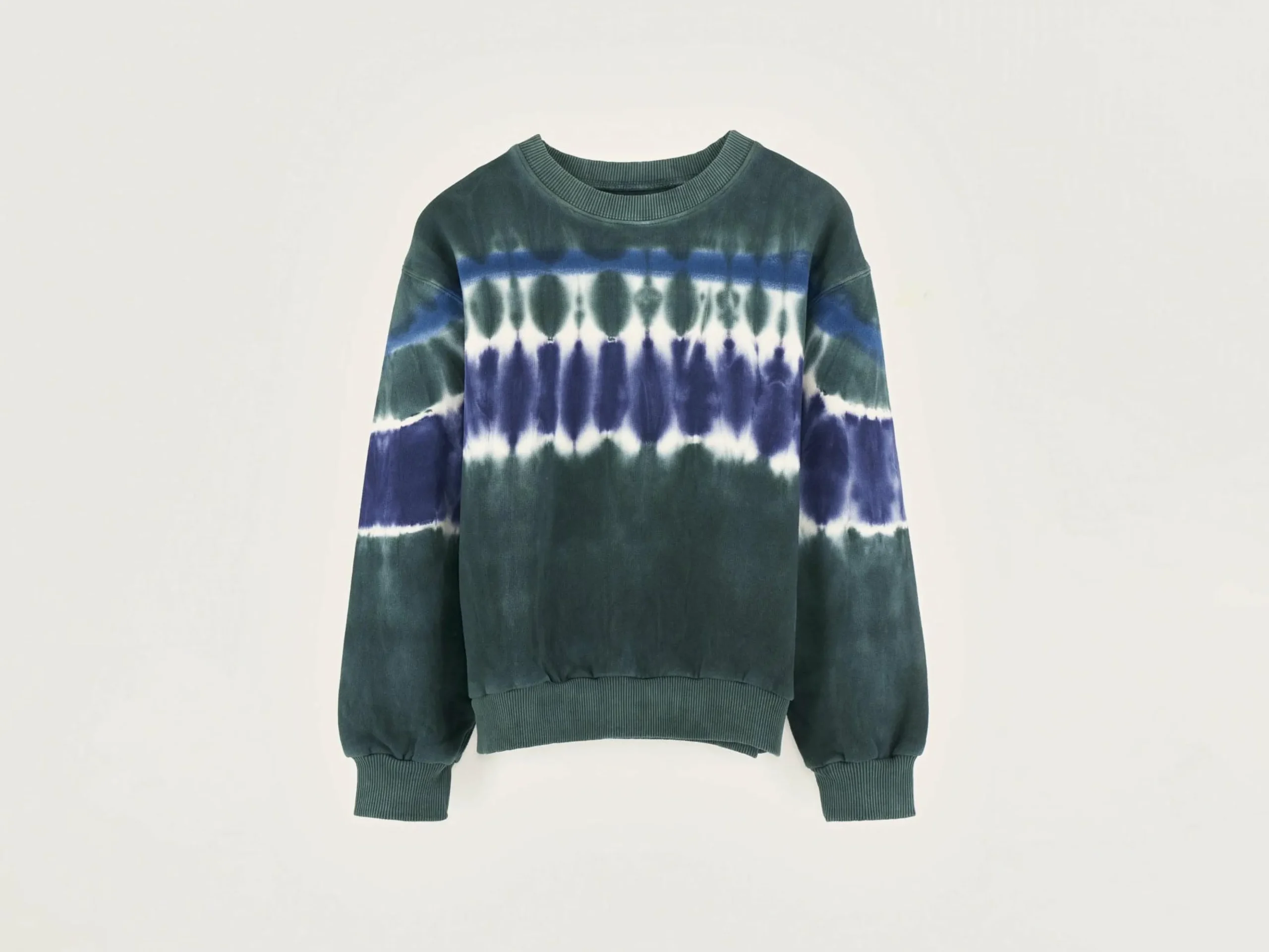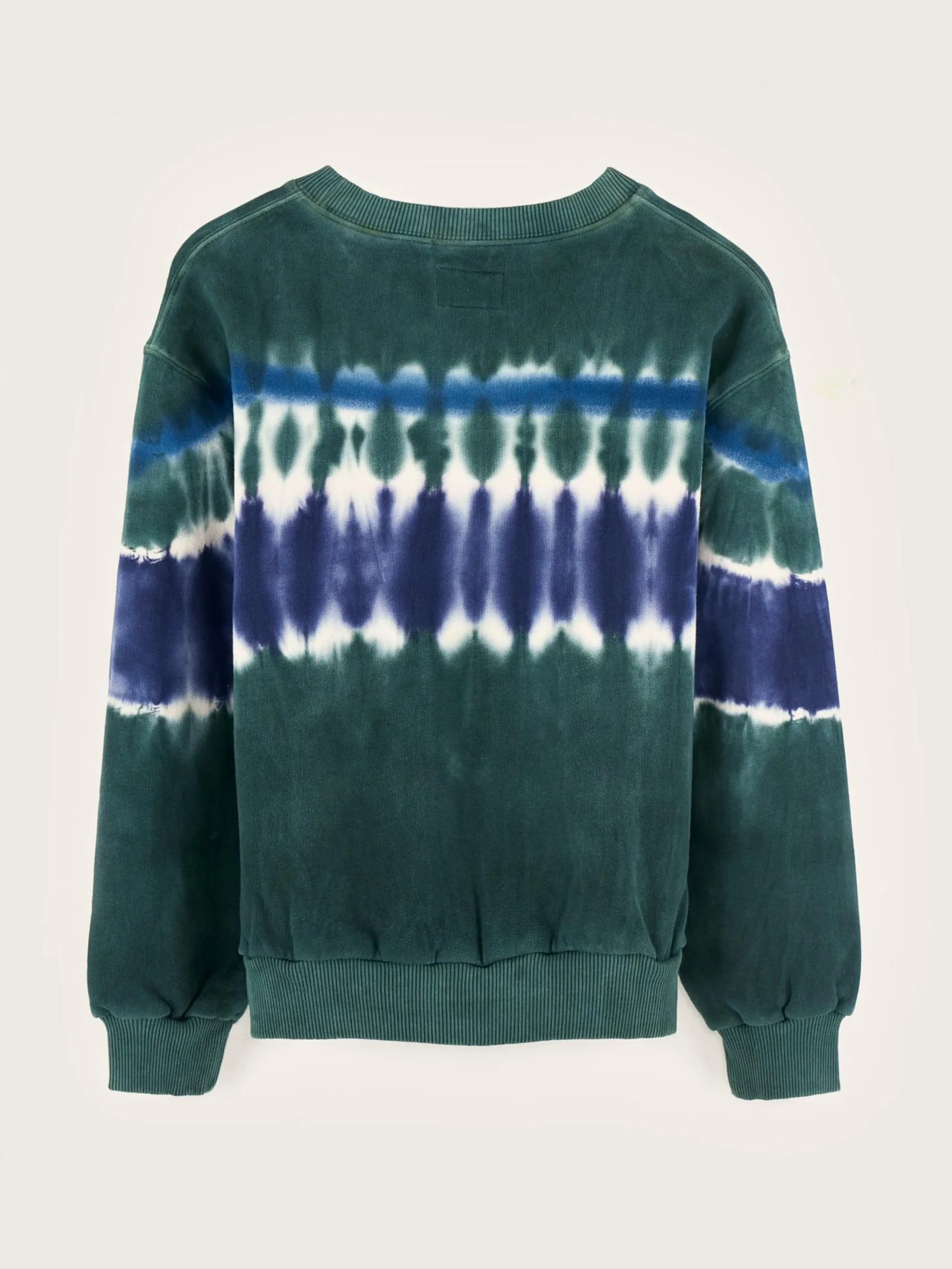 Comfortabel sweatshirt van geborstelde fleece met blauwe en groene tie-dye print.