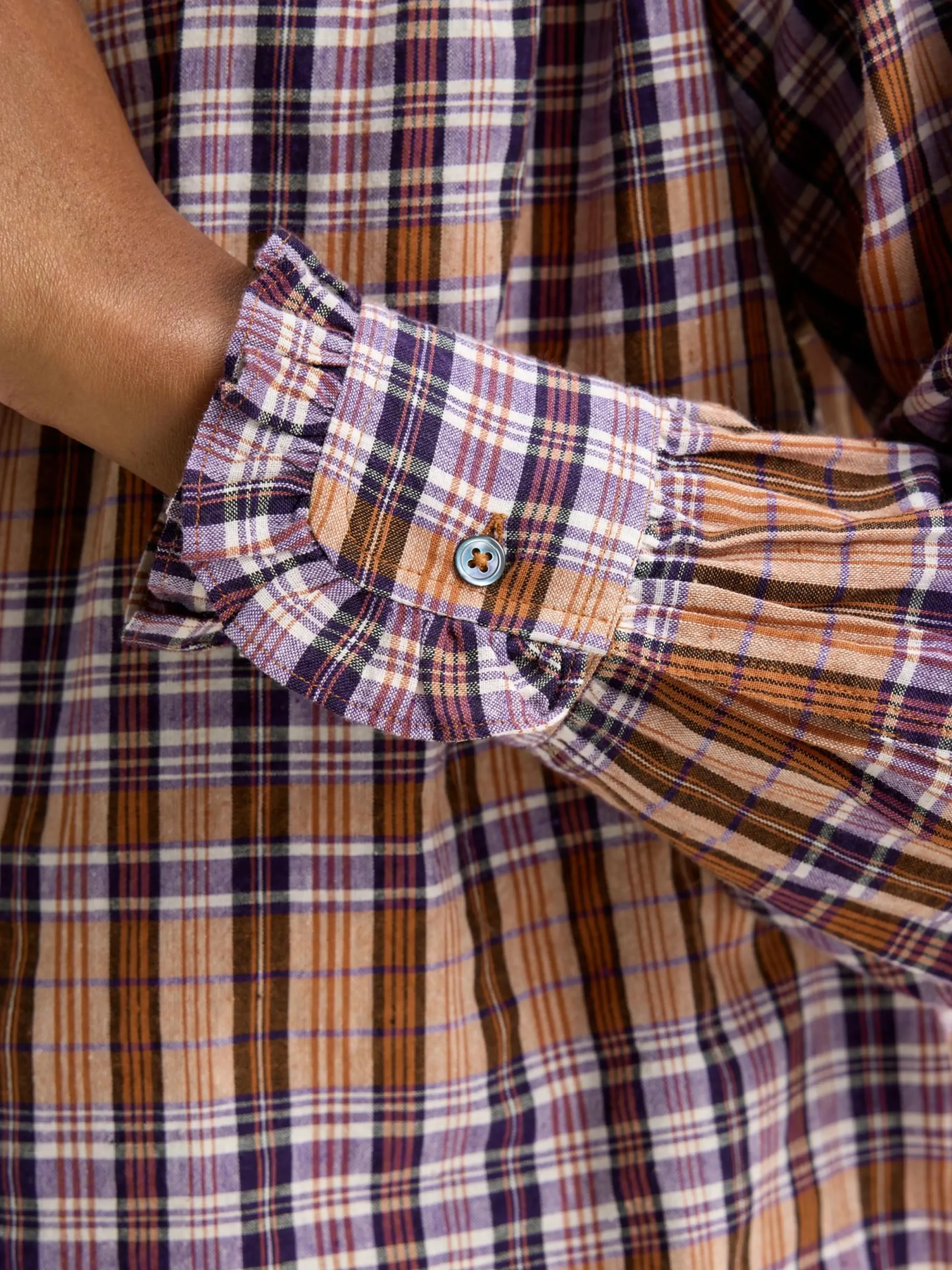 Geruite blouse van katoen, met gefronste plooien en een opstaande kraag.