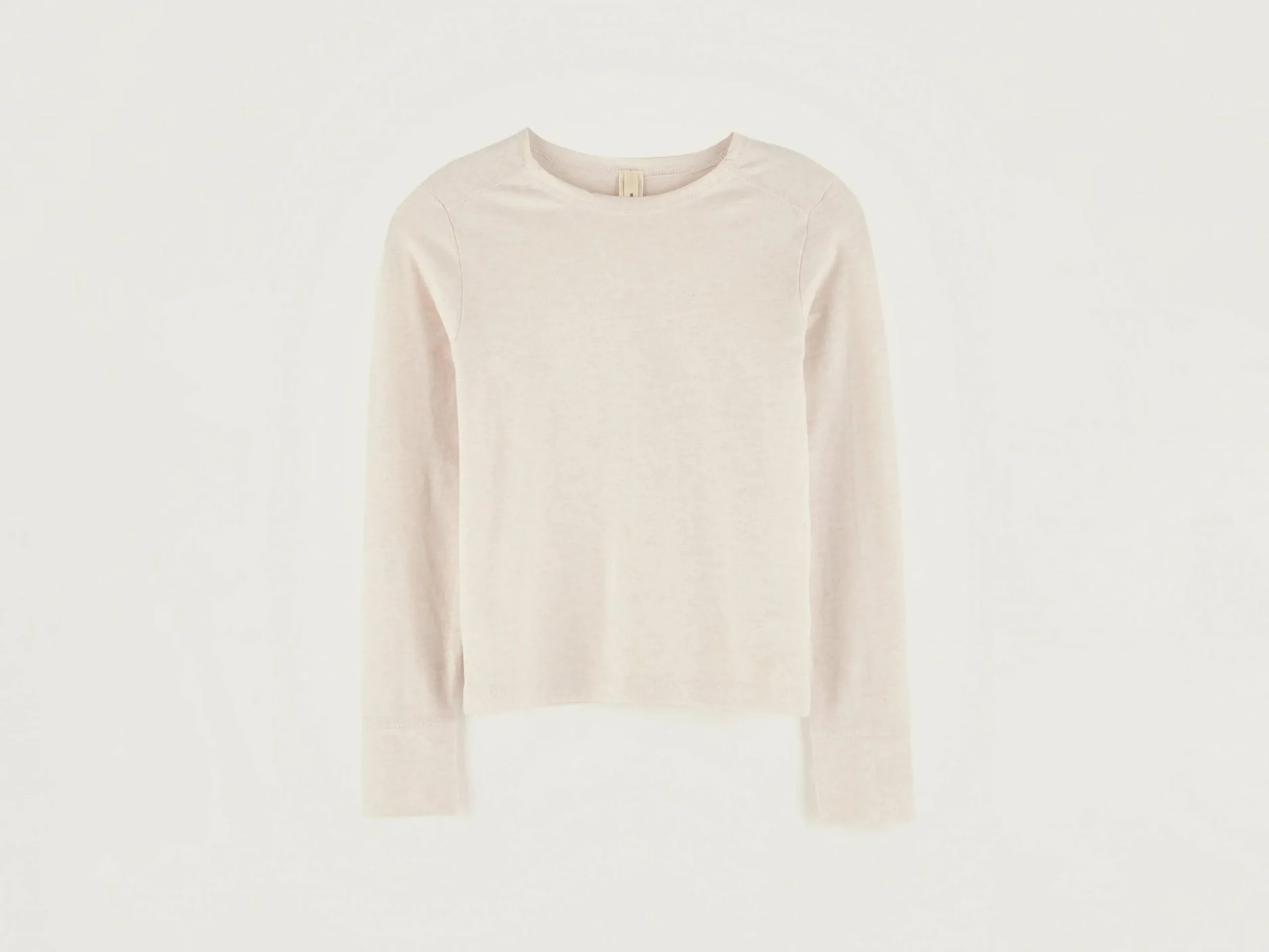 Roze katoenen T-shirt met lange mouwen en een aansluitend model.