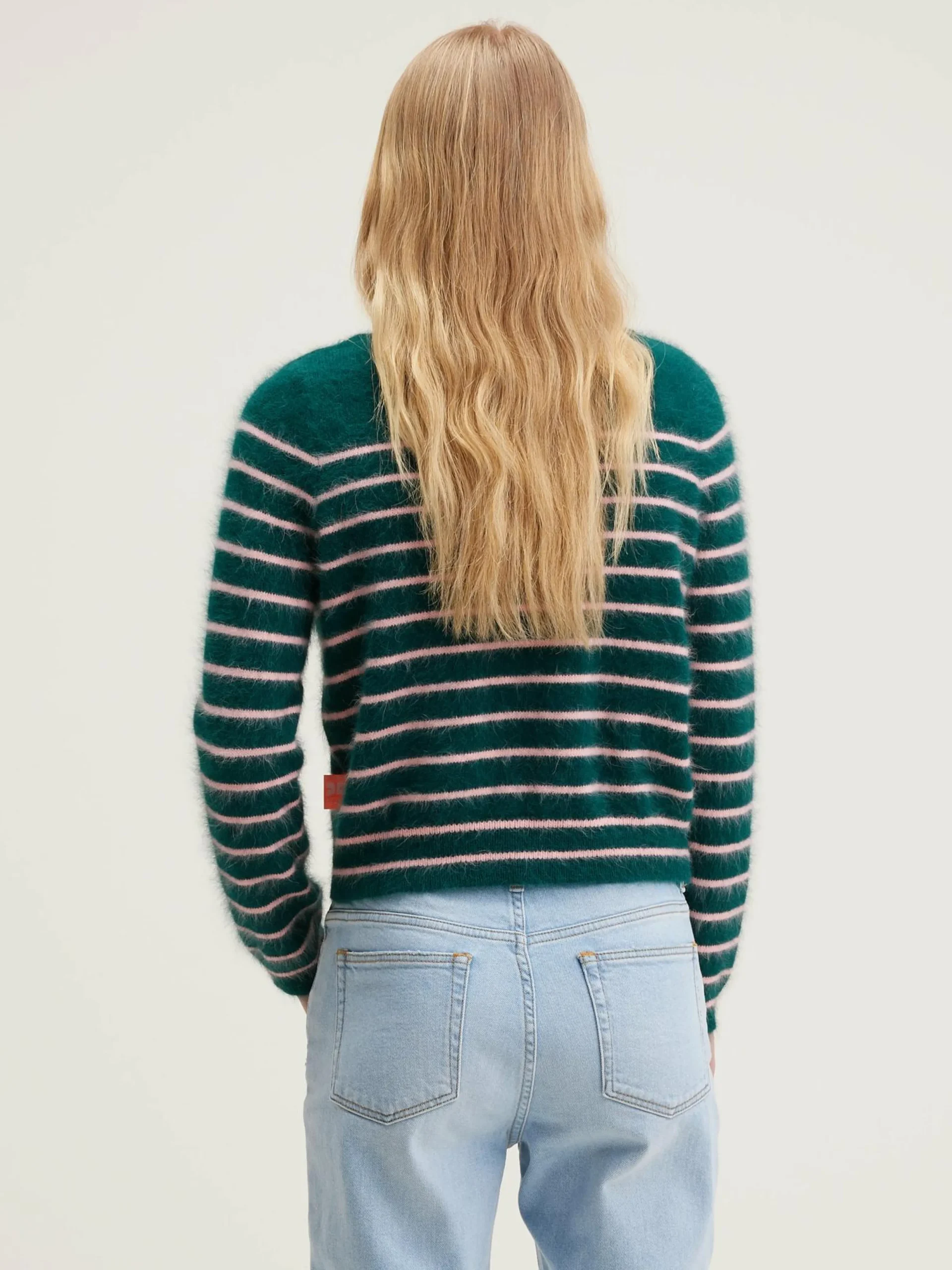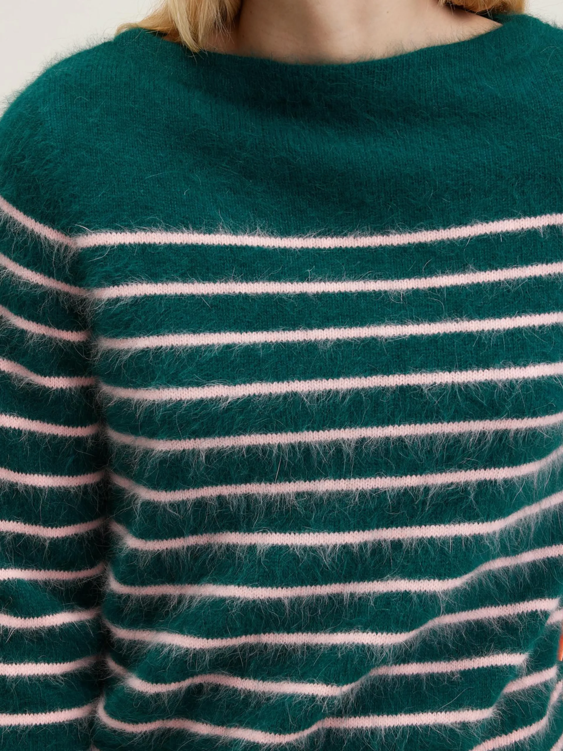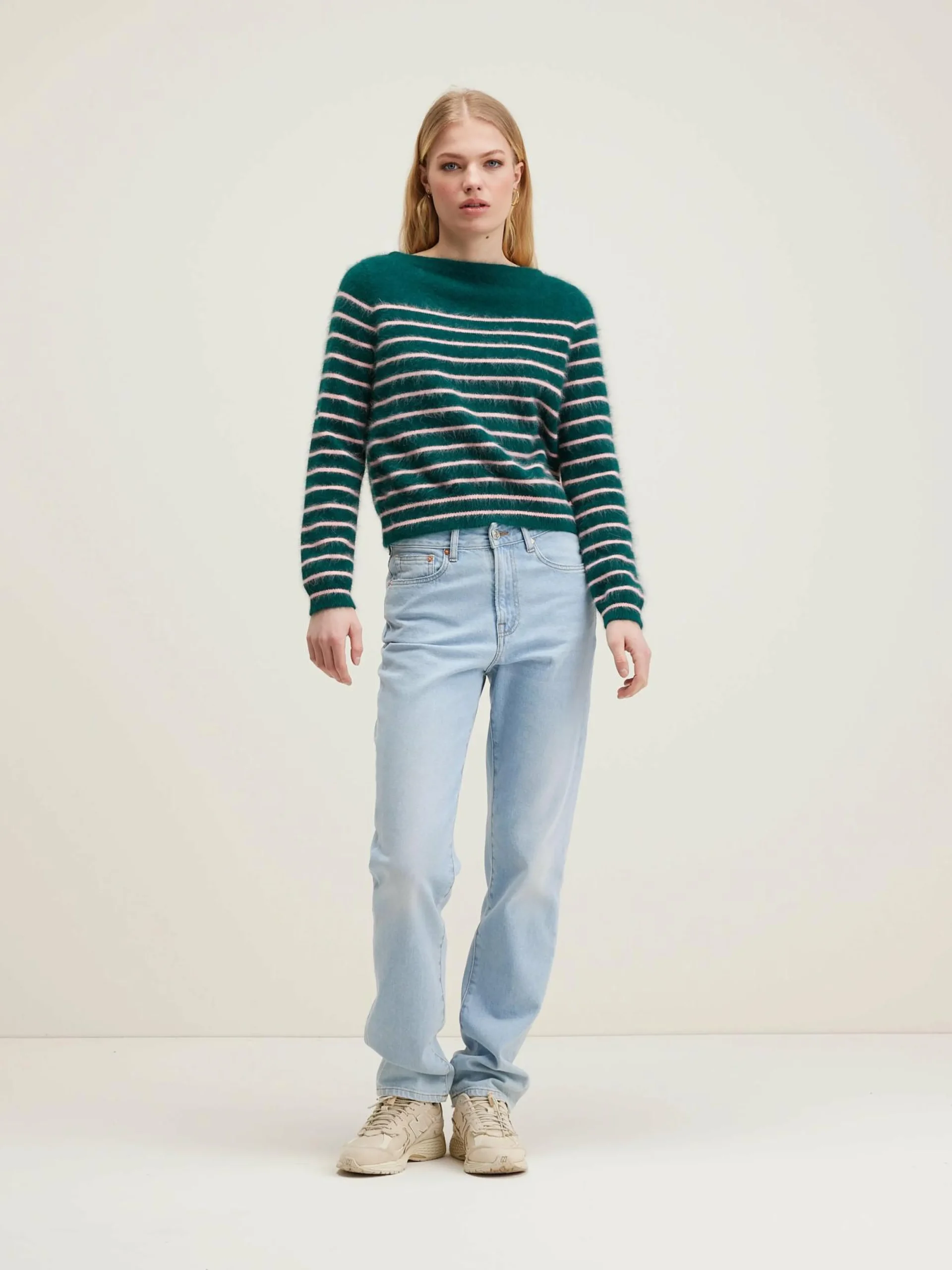 Klassieke, gestreepte trui met boothals, van angoramix.