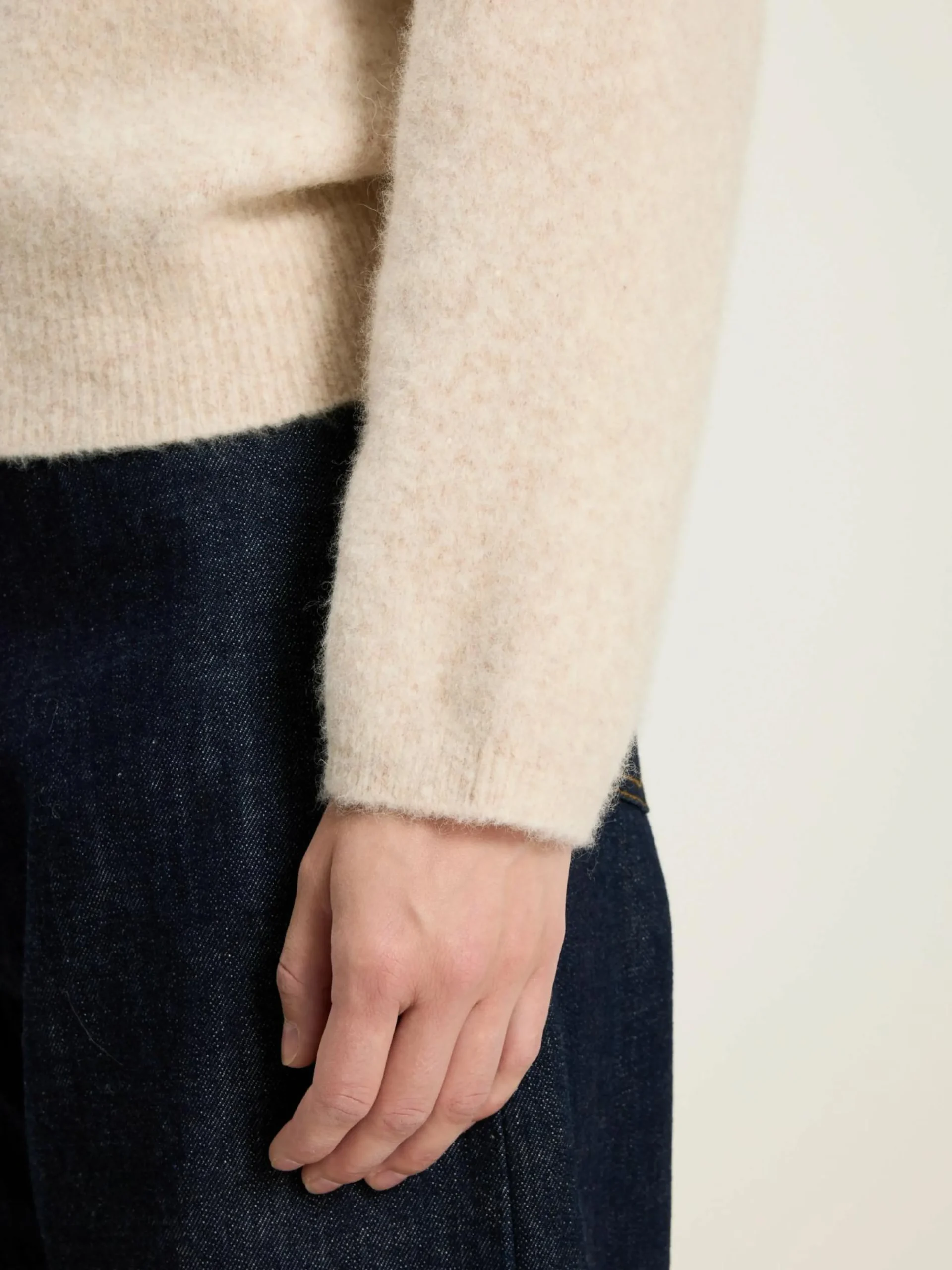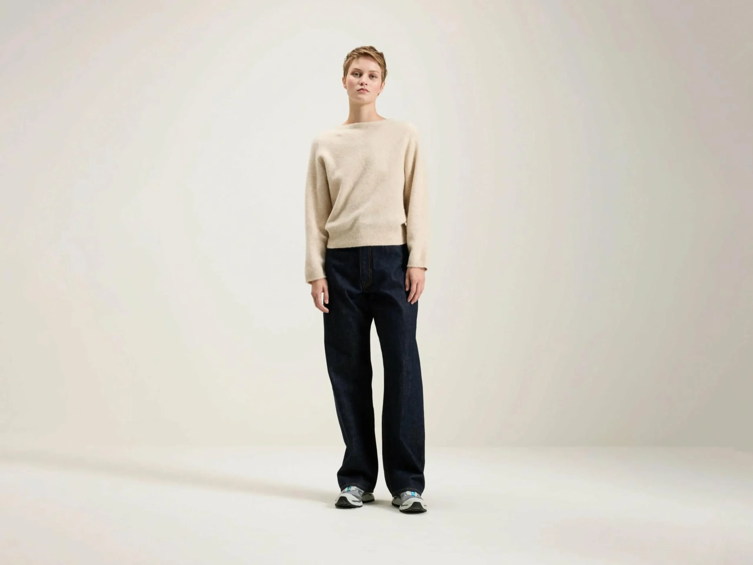 Ecru oversizede trui.