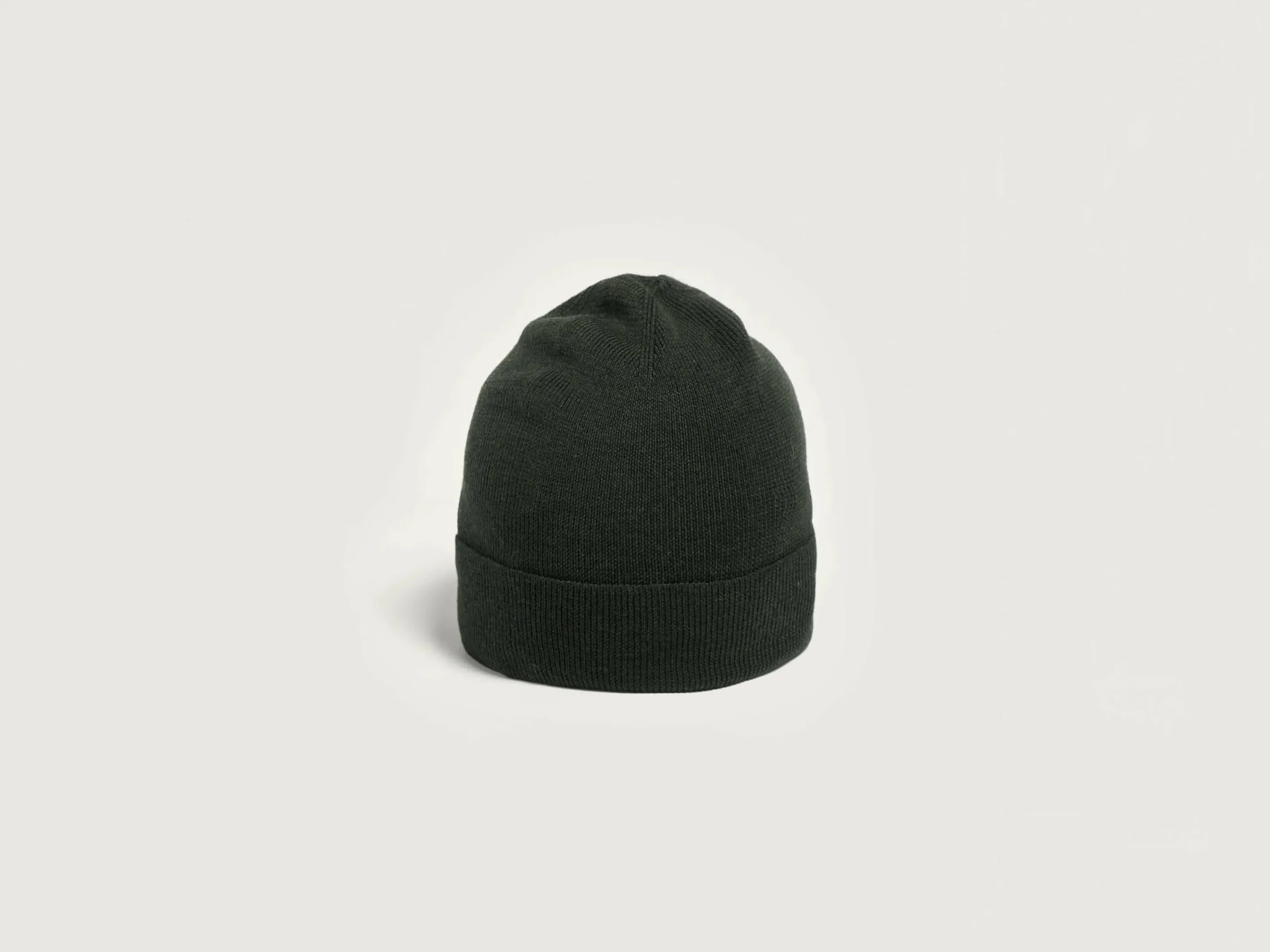 Klassieke geribbelde beanie van bosgroene, superfijne merinowol.